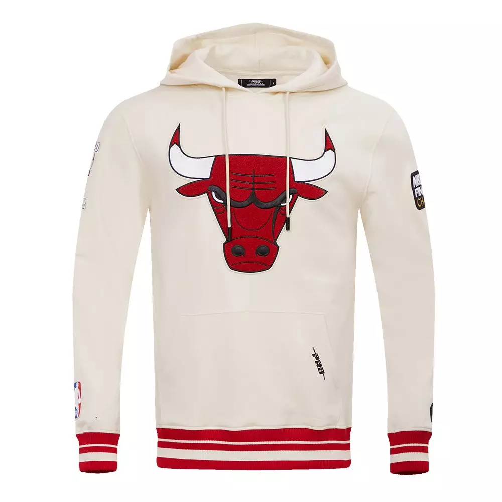 The Pro Standard Men's NBA Chicago Bulls Retro Classic Fleece Pullover Hoodie in eggshell & red is the ultimate tribute to your unwavering Chicago Bulls fandom. Crafted from a cozy blend of cotton and polyester, its heavyweight design provides warmth and comfort during chilly game days. Embroidered graphics and chainstitch felt applique proudly display your Bulls allegiance, while the plush fleece lining ensures you stay cozy throughout the game. Whether you're cheering from the stands or simply showing your support, this hoodie is the perfect way to represent the Chicago Bulls in style.Features