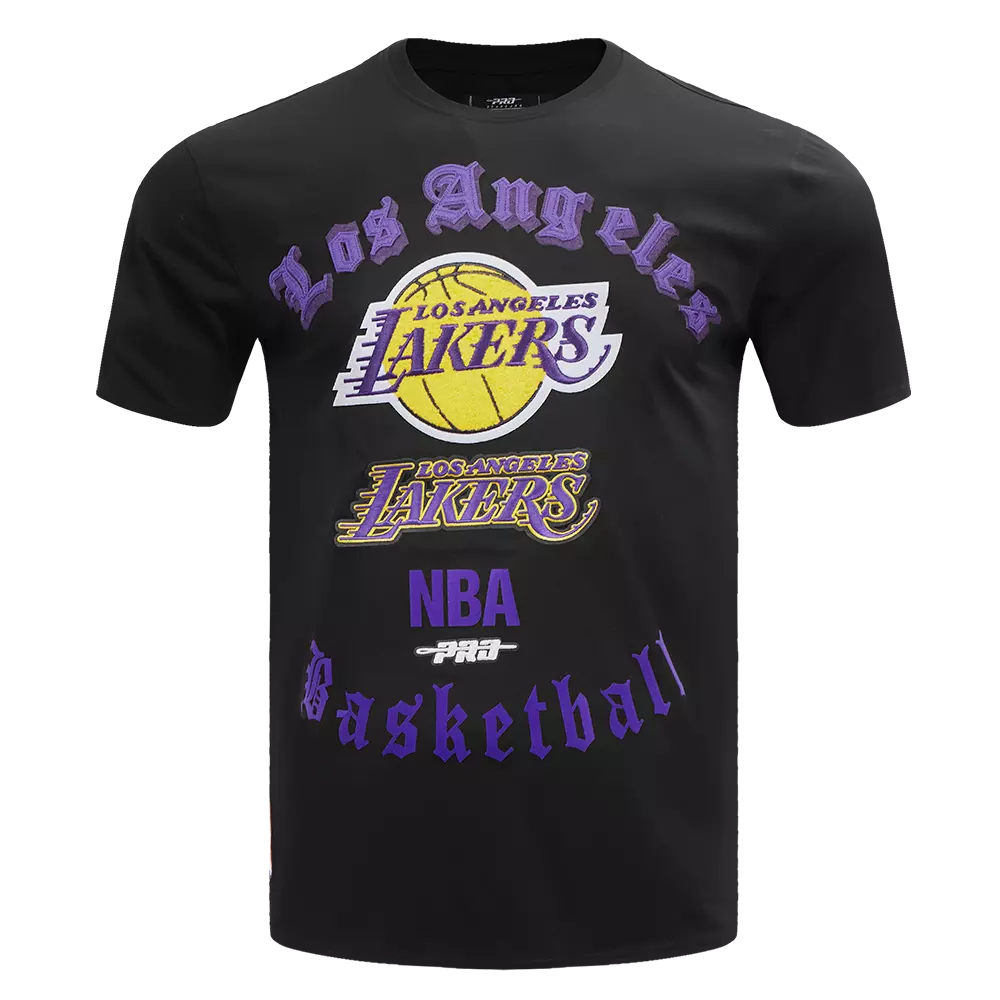 Athletic competition dates back. The Old English Capsule features the Renaissance-esque typeface alongside team emblems. Display your loyalty, feel like fan royalty, and conquer the day's look. This black Pro Standard Men's NBA Los Angeles Lakers Old English Tee is made from single jersey cotton and features base twill 3D satin Stitch embroidery and premium team logo patches. The combination of these elements creates a unique and eye-catching shirt that is sure to turn heads. Whether you're dressing up for a night out or just looking for a cool new casual shirt, our tee is the perfect choice.Features