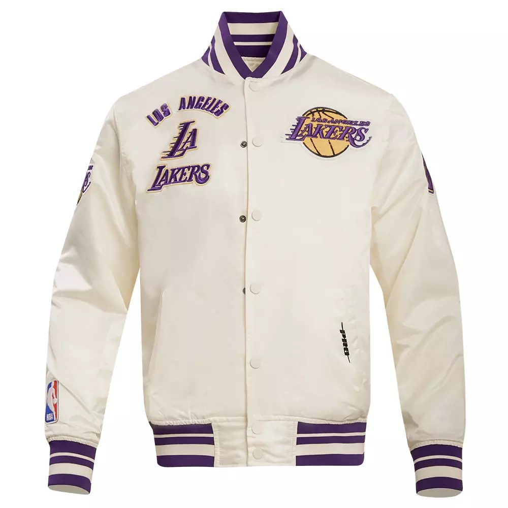 Pro Standard Men's NBA Los Angeles Lakers Retro Classic Rib Satin Jacket -Eggshell/Purple