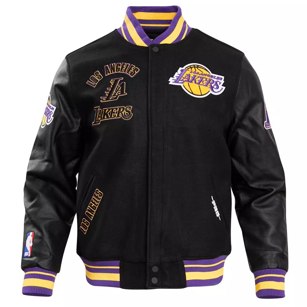 Secure a classy touch in your go-to fashion by styling this blck, purple & yellow Pro Standard Men's NBA Los Angeles Lakers Retro Classic Rib Wool Varsity Jacket. This jacket features the eye-striking combo of black, purple and yellow color, where the exquisite embellishments on the outlook make your style a win-win. It is inspired by the American professional basketball team, the Los Angeles Lakers, that slays its game skills and fashion through the NBA.Features