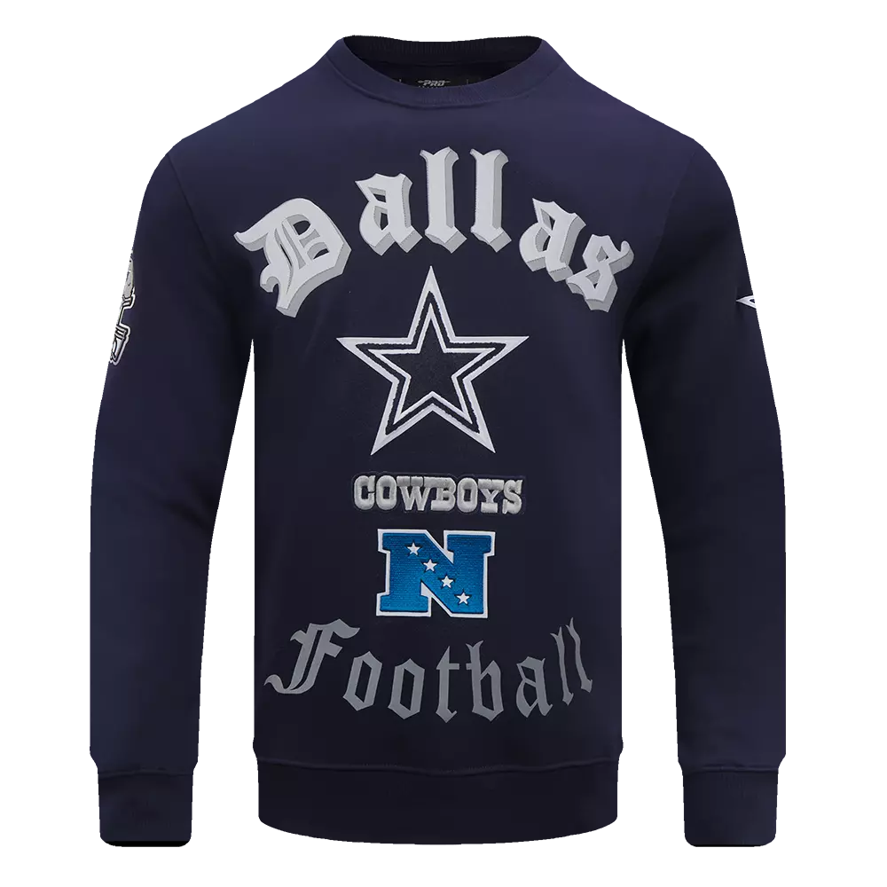 Athletic competition dates back. The Old English Capsule features the Renaissance-esque typeface alongside team emblems. Display your loyalty, feel like fan royalty, and conquer the day's look.This navy Pro Standard Men's NFL Dallas Cowboys Old English Crewneck Sweatshirt is made from 100% brushed back cotton fleece for maximum comfort.