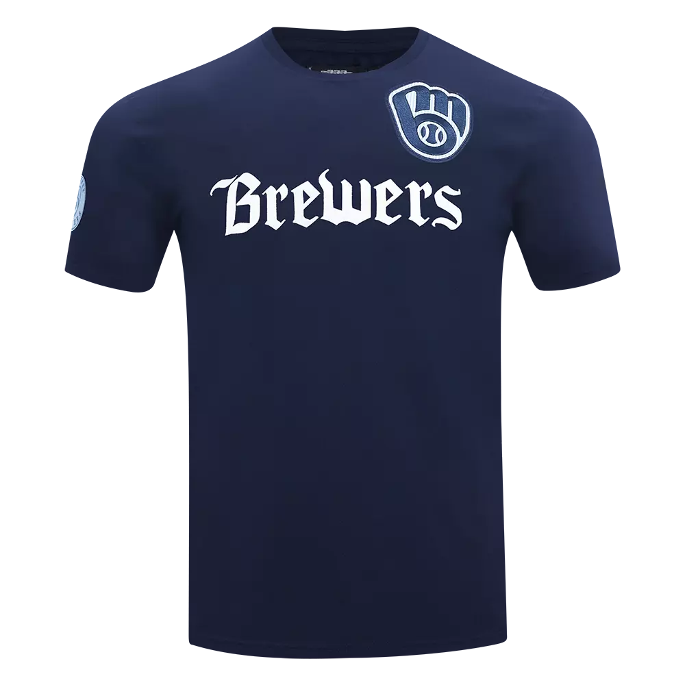 Pro Standard Milwaukee Brewers Country Club Striped Short Sleeve Tee-Navy