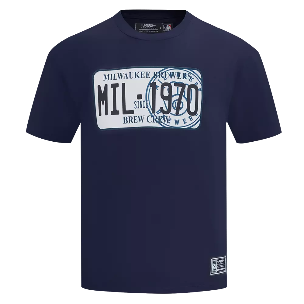 Pro Standard Milwaukee Brewers License Plate Short Sleeve Tee-Navy