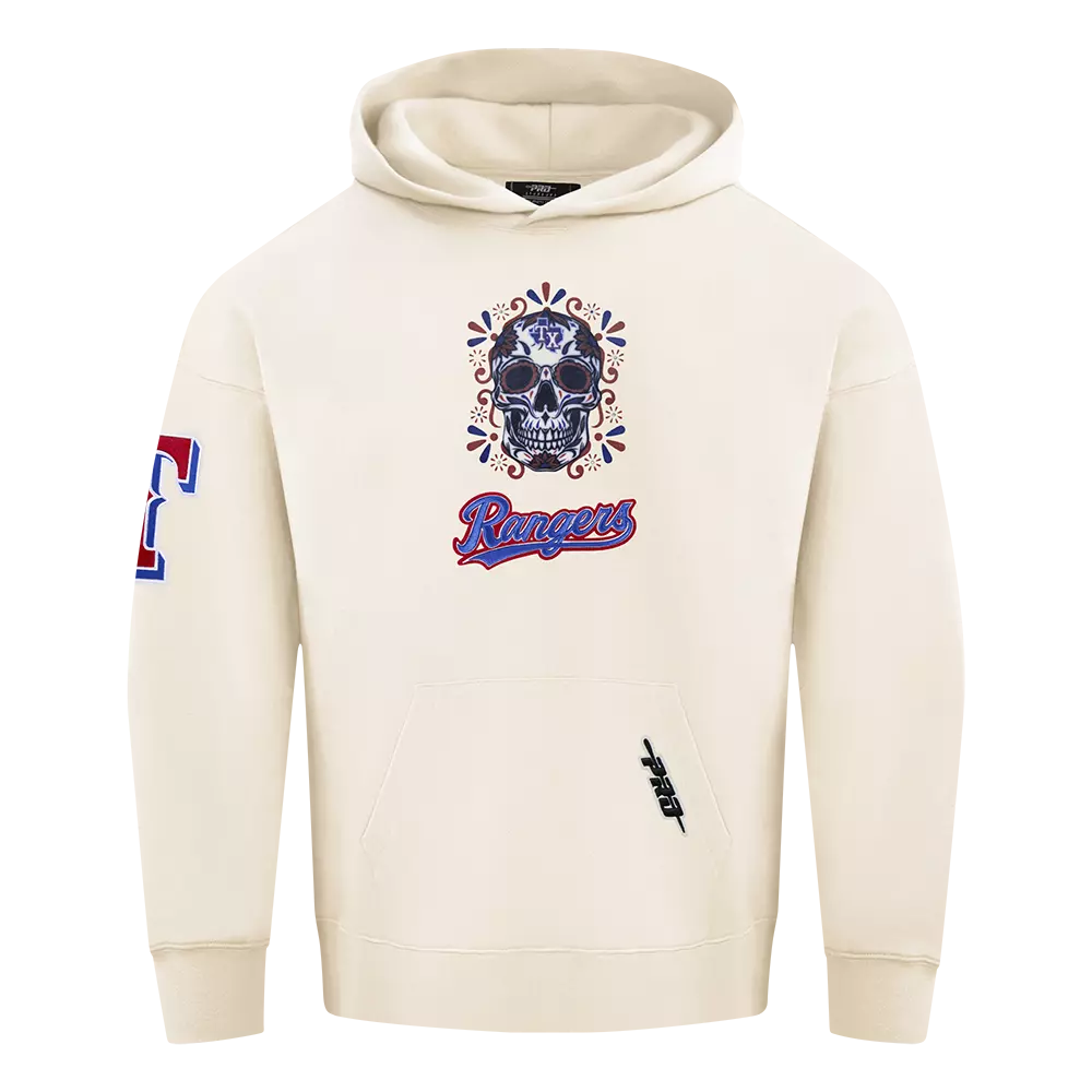 Layer up in the Pro Standard Texas Rangers Eternal Skull Drop Shadow Fleece Top-Cream, a cozy crewneck designed for crisp game days and laid‑back weekends. Soft fleece delivers dependable warmth, while the drop-shadow team art and bold skull motif bring standout style without sacrificing comfort.