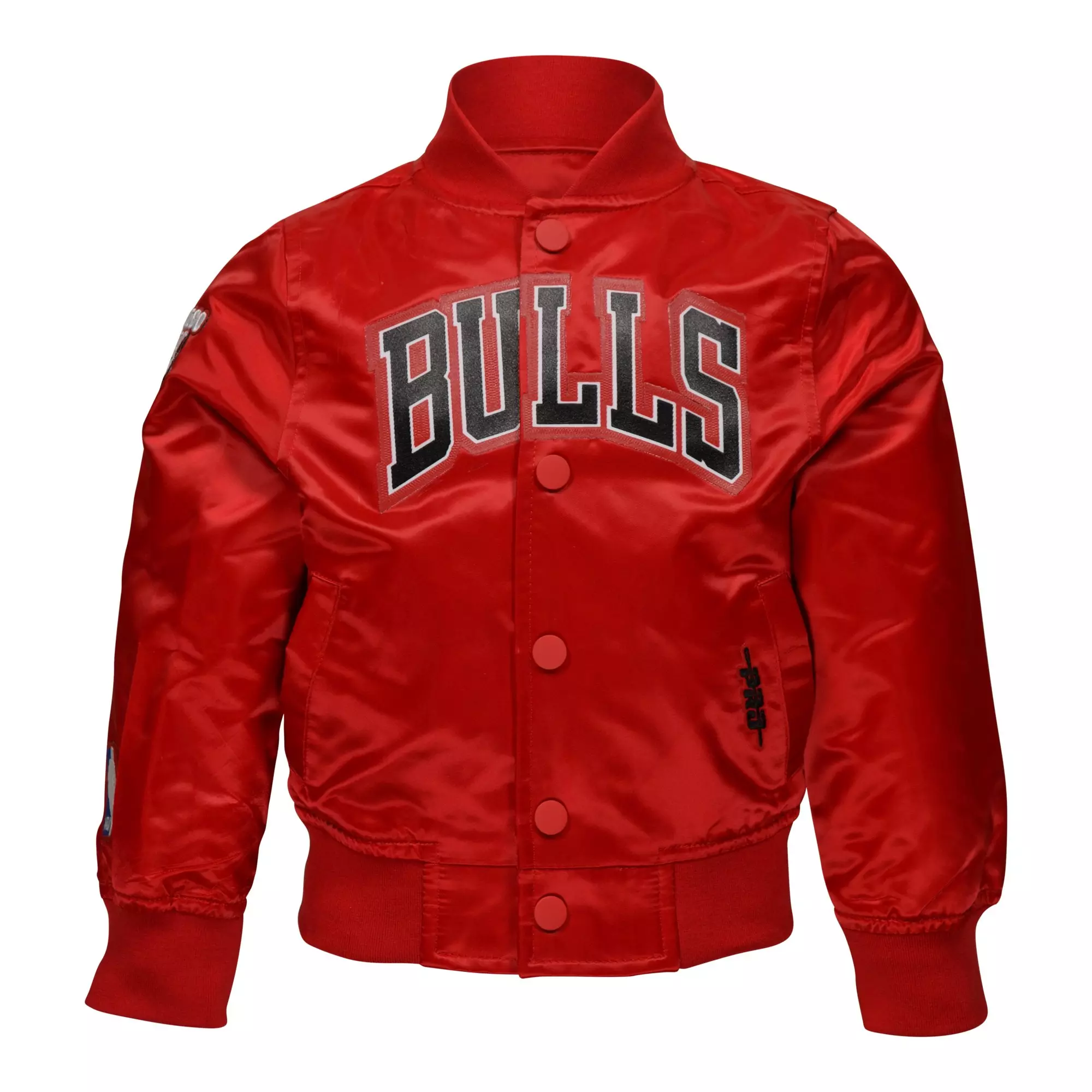 The Pro Standard Toddler Boys' Bulls Jacket - Red will keep you comfortable when the temperature drops. Featuring a quilted lining and button front closure. Various pockets offer storage for all your essentials. This stylish jacket features a satin feel and base felt chenille team logo patches, and 3D embroidery, making it the perfect choice for any fashion-savvy individual.