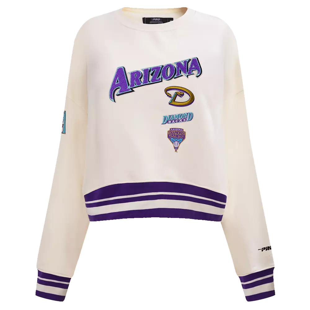 Introducing your new staple crewneck. This Pro Standard Women's Arizona Diamondbacks Retro Classics Crewneck - Eggshell features embroidered team graphics paired with contrast trims for a striking look, finished off with ribbed trims constructed on premium cotton for maximum comfort.Features