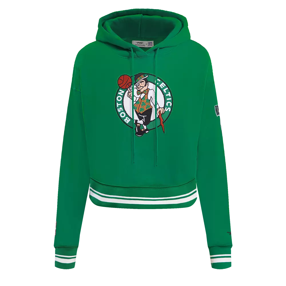 Get ready to show off your team spirit with the Pro Standard Women's Boston Celtics Retro Classic Cropped Hoodie - Green. Step up your game this season with this women's pull-over that boasts a stylish hood with adjustable drawcords and a bold team graphic print across the brim. Stand out from the crowd with chenille patch team graphics on the front and arms, solidifying your dedication to your beloved team. Not only does this hoodie showcase your loyalty, but it also offers unbeatable comfort with its ultra-soft fleece material interior and regular fit, perfect for battling the cold weather. Take your outfit to the next level by pairing it with the matching sweatpants for a complete, coordinated look that will have heads turning.Features