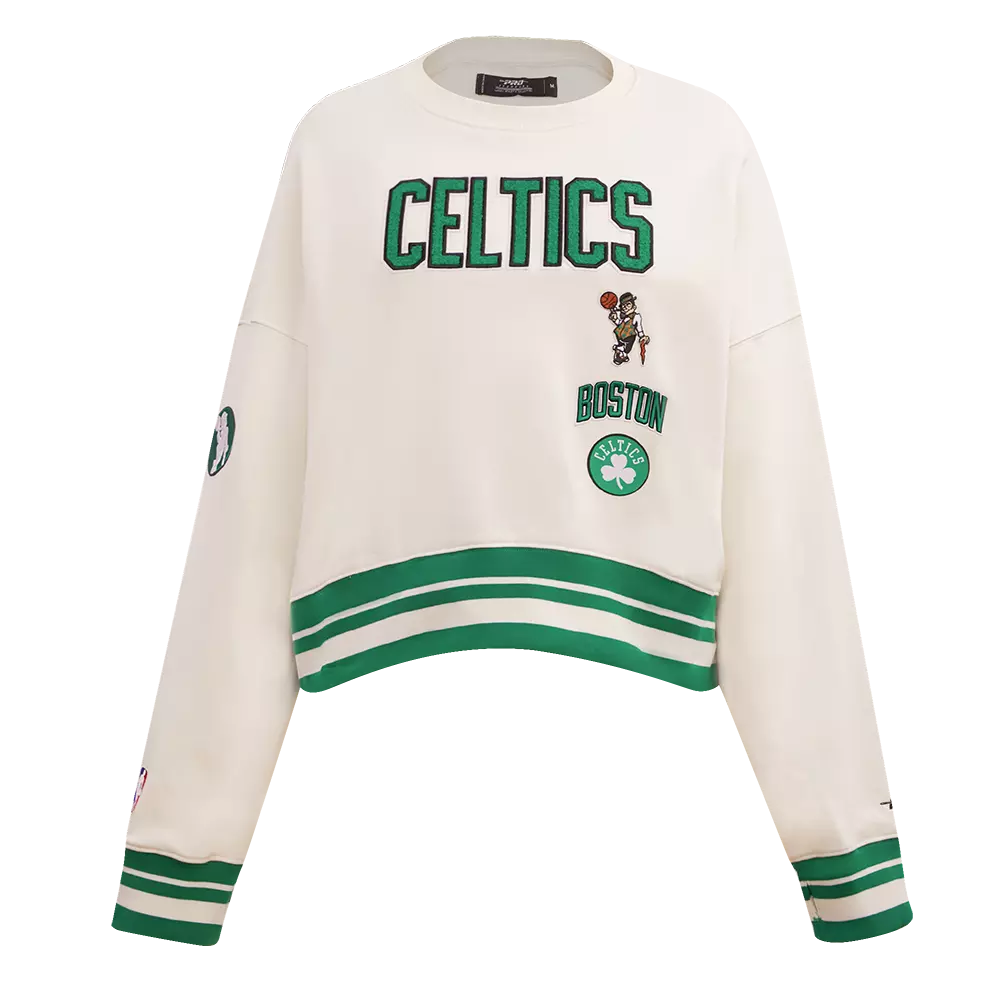 Introducing your new staple crewneck. This Pro Standard Women's Boston Celtics Retro Classics Crewneck - Eggshell features embroidered team graphics paired with contrast trims for a striking look, finished off with ribbed trims constructed on premium cotton for maximum comfort.Features