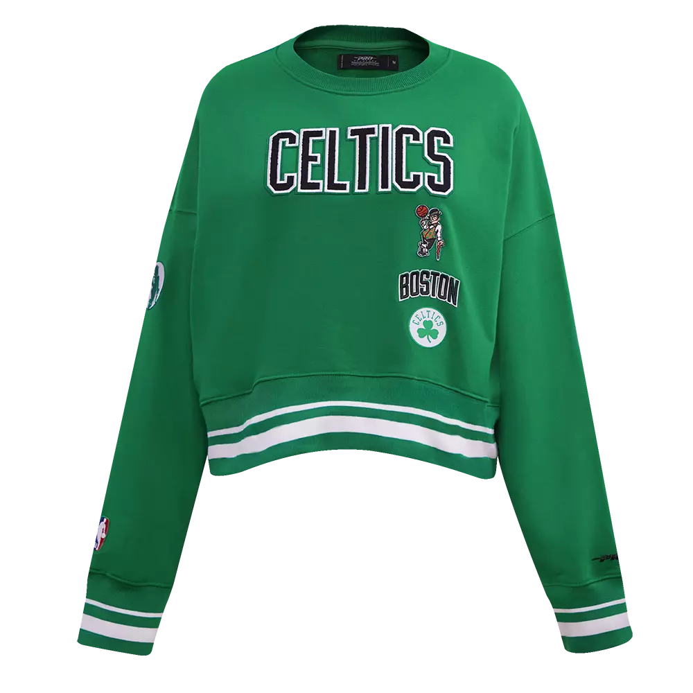 Introducing your new staple crewneck. This Pro Standard Women's Boston Celtics Retro Classics Crewneck - Green features embroidered team graphics paired with contrast trims for a striking look, finished off with ribbed trims constructed on premium cotton for maximum comfort.Features