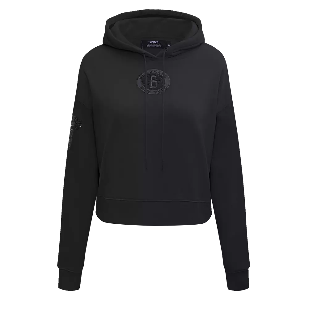 Pro Standard Women's Brooklyn Nets Triple Black Fleece Cropped PO Hoodie