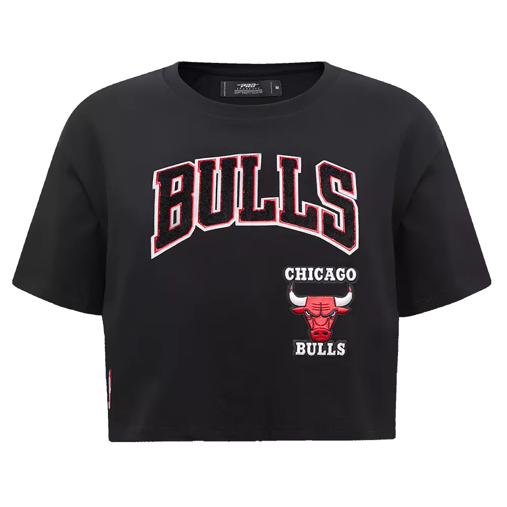 The Pro Standard Women's Chicago Bulls Retro Classic Boxy Tee - Black is made from single jersey cotton and features base twill 3D satin Stitch embroidery and premium team logo patches. The combination of these elements creates a unique and eye-catching shirt that is sure to turn heads. Whether you're dressing up for a night out or just looking for a cool new casual shirt, our tee is the perfect choice.Features
