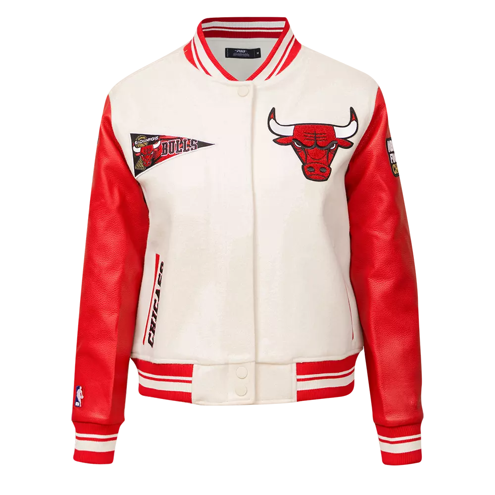 Pro Standard Women's Chicago Bulls Retro Classic Varsity Jacket - Eggshell/Red