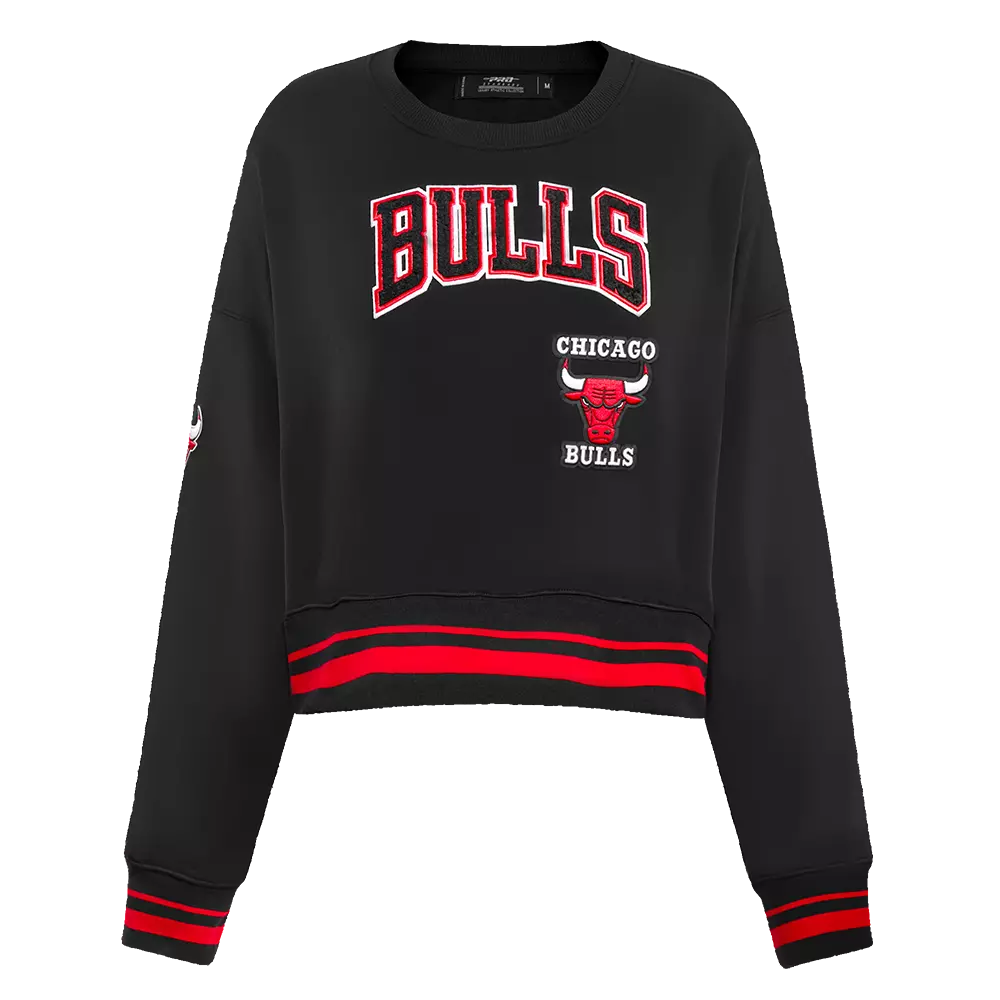 Introducing your new staple crewneck. This Pro Standard Women's Chicago Bulls Retro Classics Crewneck - Black/Red features embroidered team graphics paired with contrast trims for a striking look, finished off with ribbed trims constructed on premium cotton for maximum comfort.Features