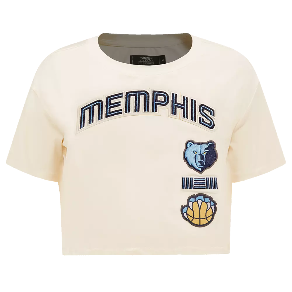 The Pro Standard Women's Memphis Grizzlies Retro Classic Boxy Tee - Eggshell is made from single jersey cotton and features base twill 3D satin Stitch embroidery and premium team logo patches. The combination of these elements creates a unique and eye-catching shirt that is sure to turn heads. Whether you're dressing up for a night out or just looking for a cool new casual shirt, our tee is the perfect choice.Features