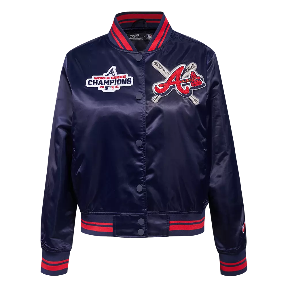 Pro Standard Women's MLB Atlanta Braves Mashup Rib Satin Jacket - Navy/Red