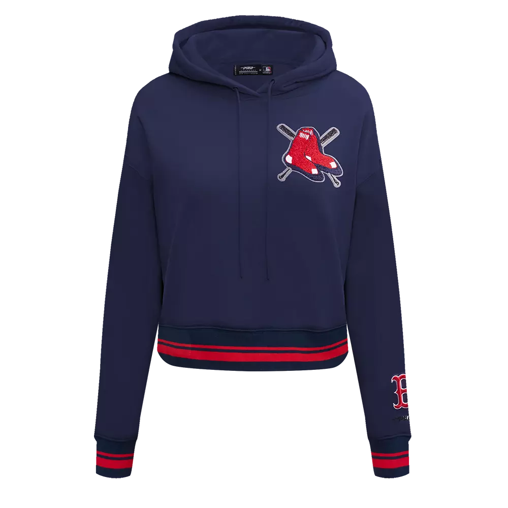 Pro Standard Women's MLB Boston Red Sox Mashup Rib Cropped Fleece Pullover Hoodie - Navy/Red