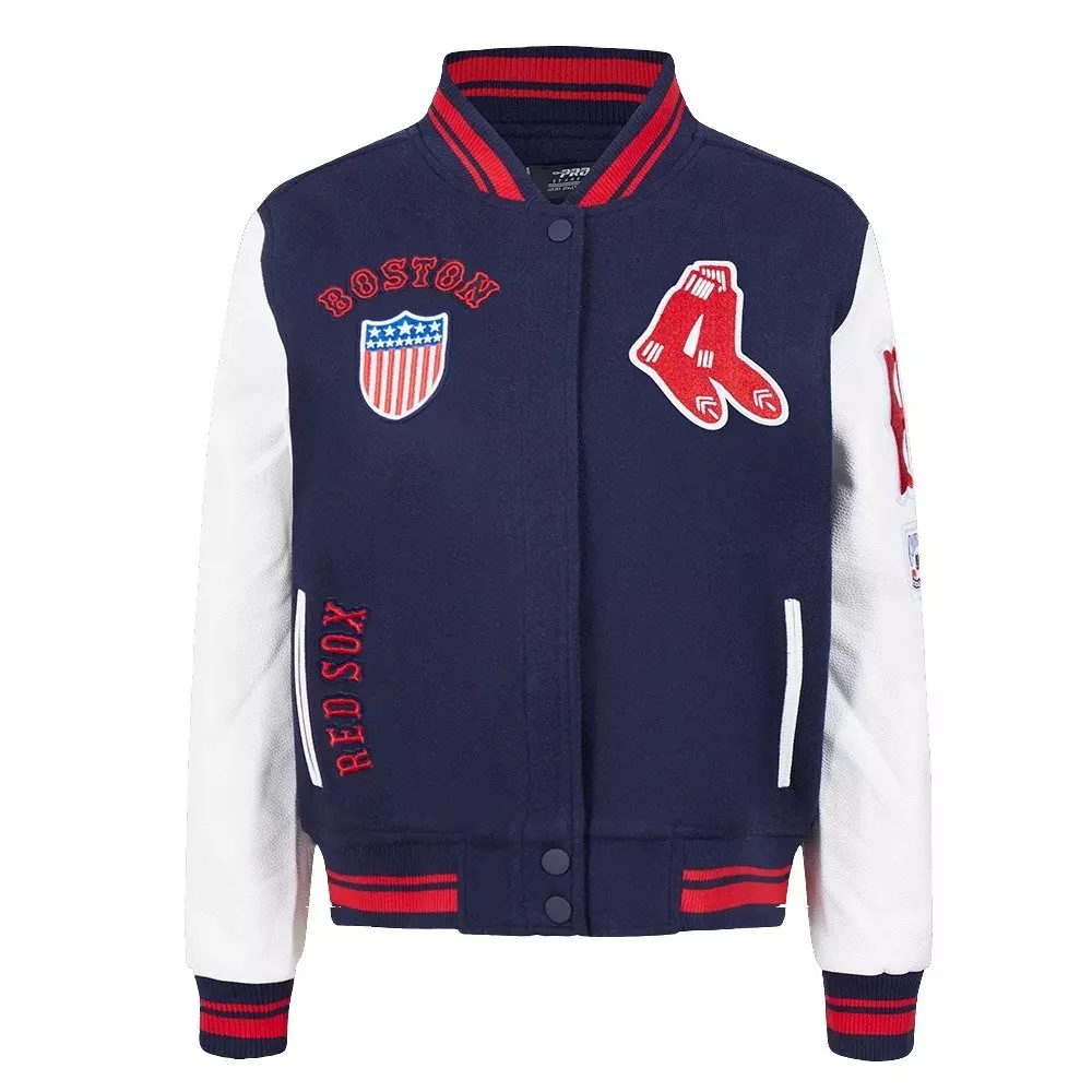 • Pro Standard Women's MLB Boston Red Sox Retro Classic Rib Wool Varsity Jacket - Navy/Red - NAVY/RED