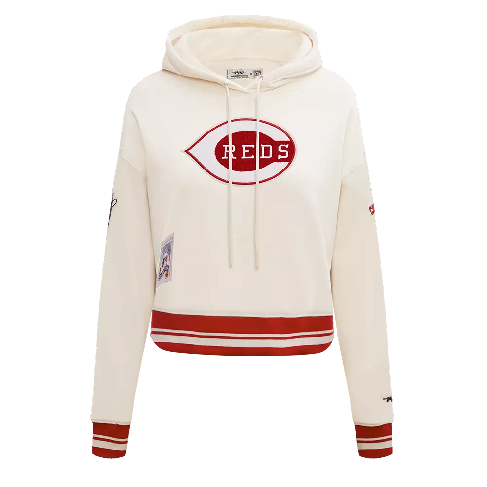 Pro Standard Women's MLB Cincinnati Reds Retro Classic Cropped Fleece Hoodie - Eggshell/Red