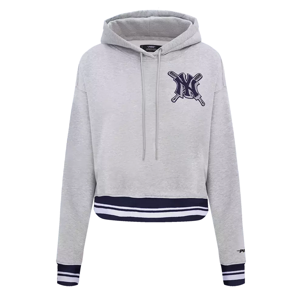 Pro Standard Women's MLB New York Yankees Mashup Rib Cropped Fleece PO Hoodie -Grey/Navy