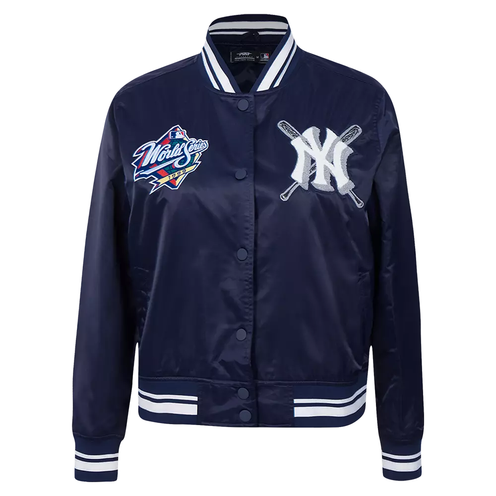 • Pro Standard Women's MLB New York Yankees Mashup Rib Satin Jacket - Navy - NAVY