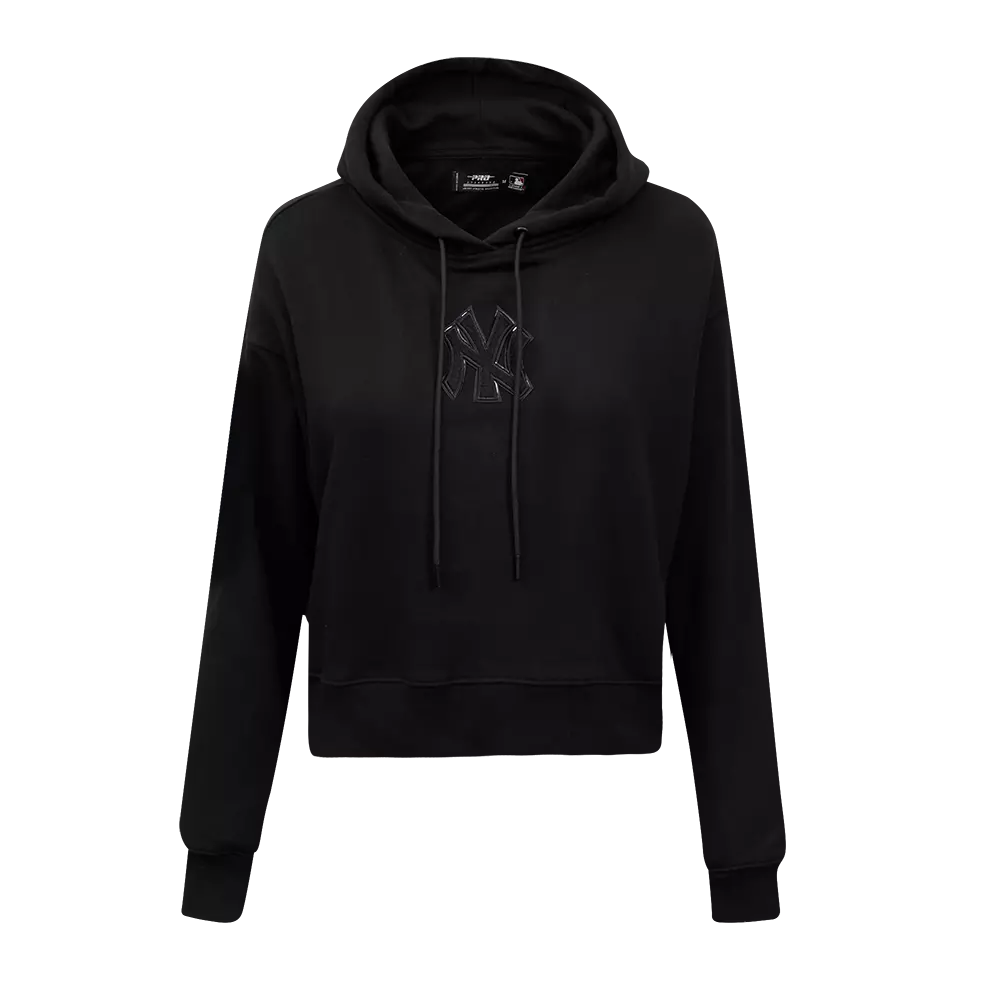 • Pro Standard Women's New York Yankees Triple Black Fleece Cropped PO Hoodie - BLACK