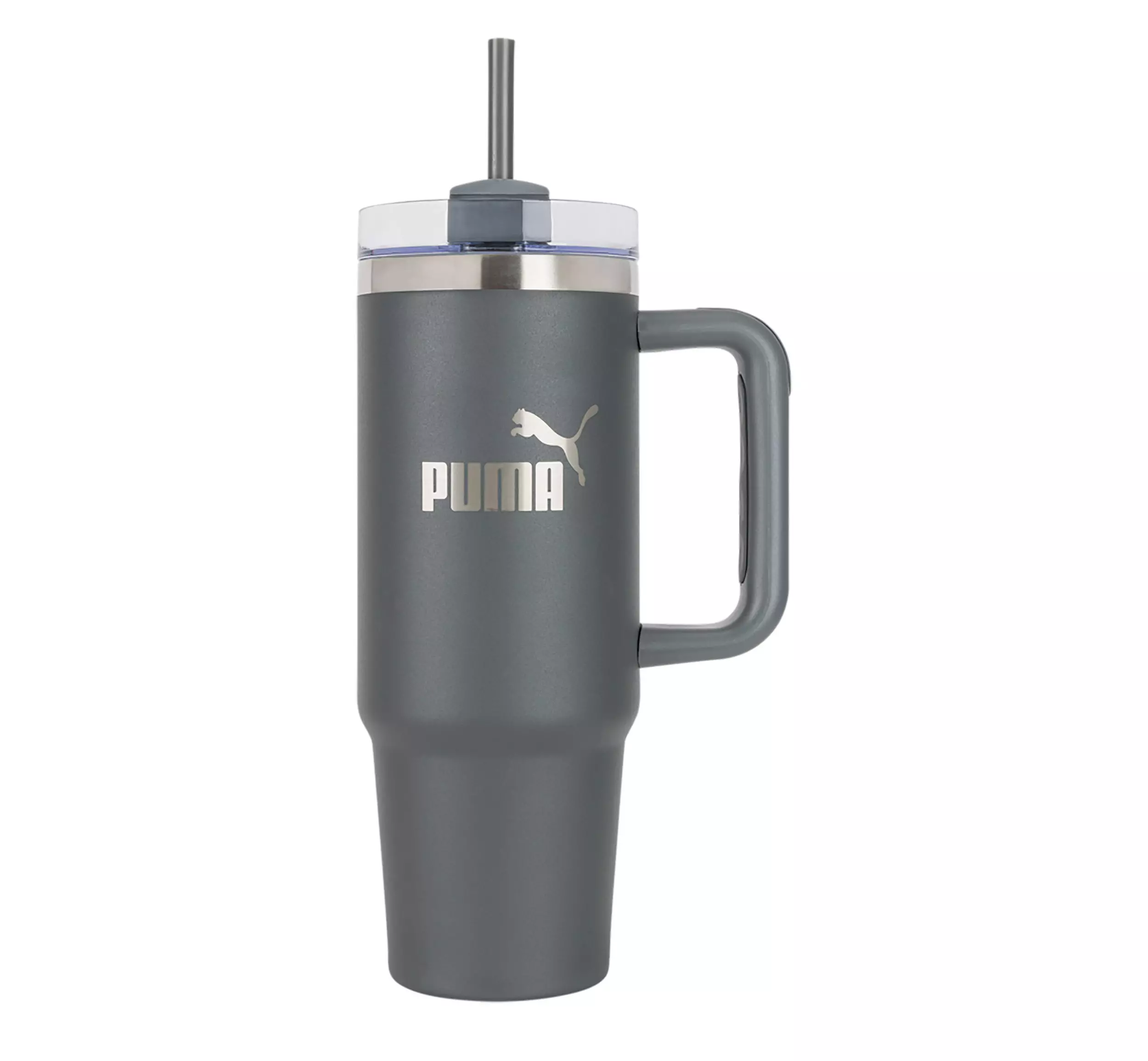 Stay hydrated with our premium PUMA Acclaim 32oz Tumbler Water Bottle - Dark Grey. Featuring a clear plastic screw-on lid and twist lock with silicone straw holder.Features