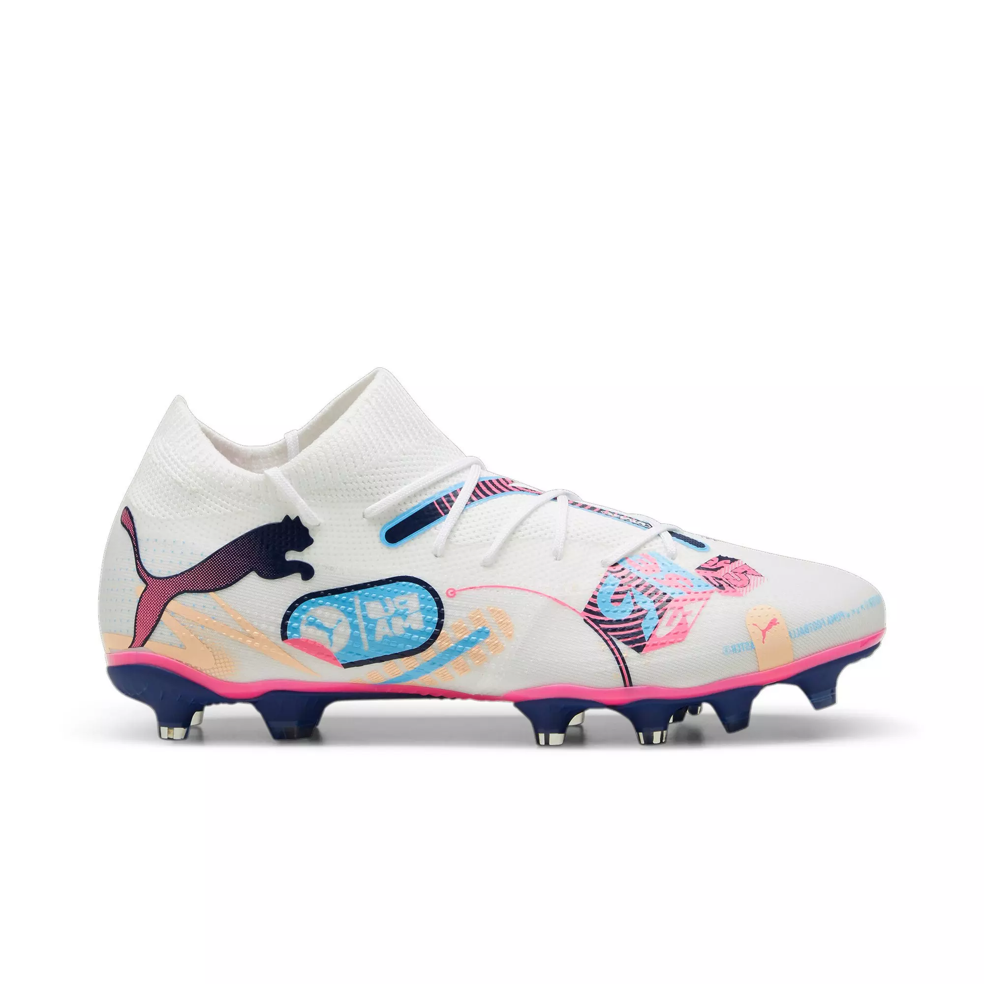 Playmakers, lock into the FUTURE. The re-engineered upper combines a supportive TAPE, stretchy knit, and lightweight mesh for a next-generation adaptive fit, so you can create without constraints throughout the 90 minutes. Dynamic Motion System provides traction and agility for quick cuts and changes of pace. When you wear the PUMA Future 7 Match "Vol. UP" Men's Soccer Cleat, you are the FUTURE. Go create.Features