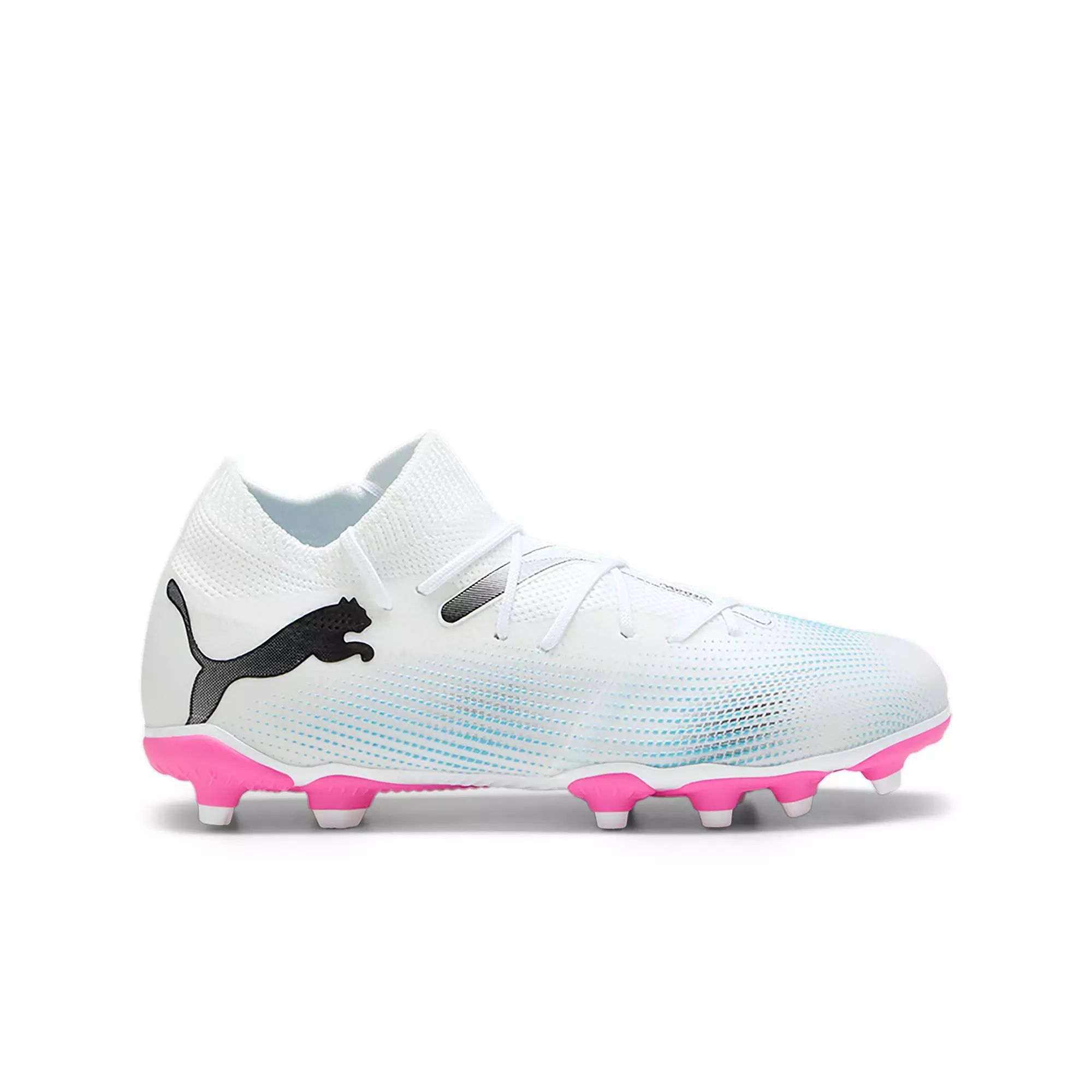 Calling all playmakers. Inspired by Neymar Jr’s style of play, the new PUMA Future 7 Match "White/Poison Pink/Blue" Grade School Kids' Soccer Cleat is here so you can Drive Them Crazy. It has a FUZIONFIT360 upper with PWRTAPE support that locks you in for quick cuts and changes of pace. Dynamic Motion System provides more support at the heel, more flexibility at the forefoot, and more traction in every direction. The upper is textured with different levels of grip for dribbling, passing, and finishing, so you can make every play count.Features