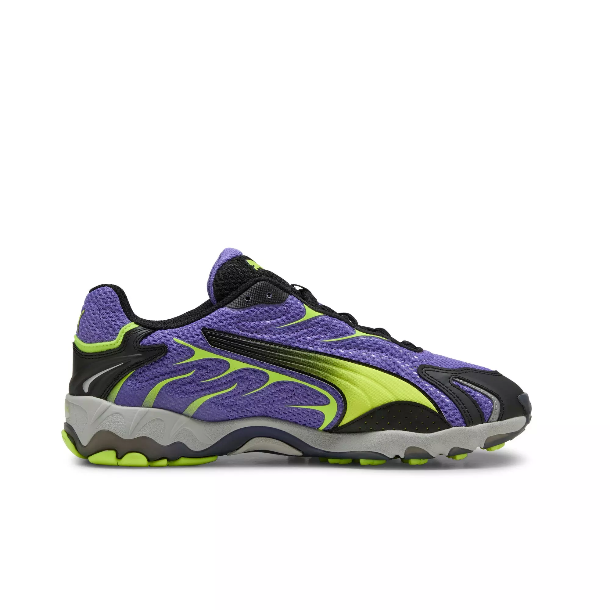 Re-introducing, the Inhale. Born in the 2000s, the PUMA Inhale "Purple/Black/Lime" Men's Shoe first hit the scene as a performance runner. Its exaggerated lines, contours, and curves made it beloved on and off the track. Today, it’s back with an updated lifestyle silhouette and the same attitude. the Inhale is brimming with energy, can you match it?Features