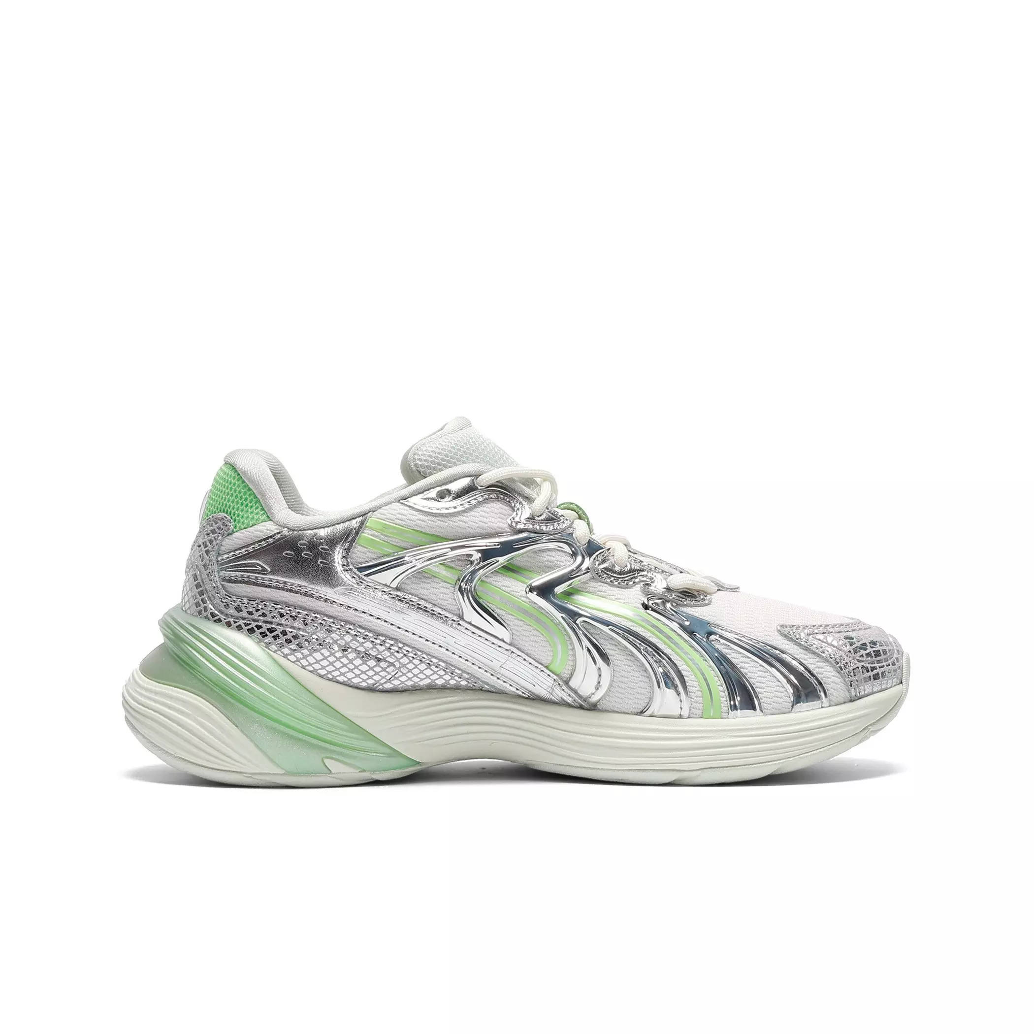Say hello to the PUMA Inverse Light Beam "Warm White/Spring Fern/Sage Frost" Women's Shoe, our most advanced silhouette yet. Inverse pushes the boundaries of art and science. To create Inverse, our designers used AI technology to remix and reshape a new silhouette inspired by our Inhale sneakers. The result is a never-before-seen design that challenges the norm. Expressive lines, mixed materials, and asymmetrical shapes come together in this new journey into the future.Features