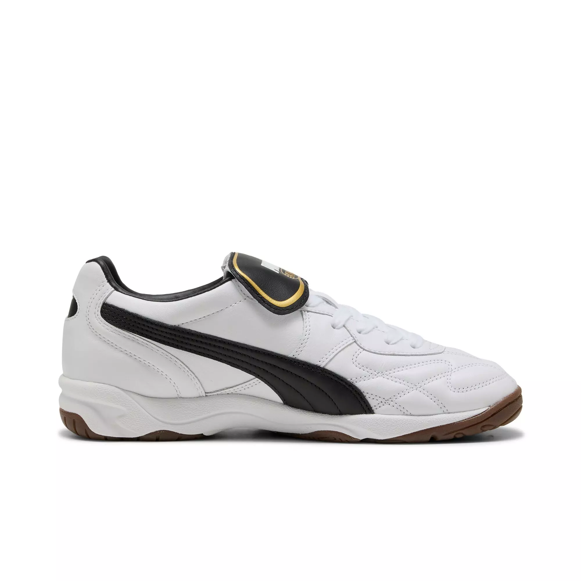 Step into the future with a nod to the past. The PUMA King Indoor "PUMA White/PUMA Black" Men's Shoe fuses our iconic soccer heritage with contemporary street style. Premium leather, a removable folded tongue, and retro-inspired details ensure you stand out with every step.Features