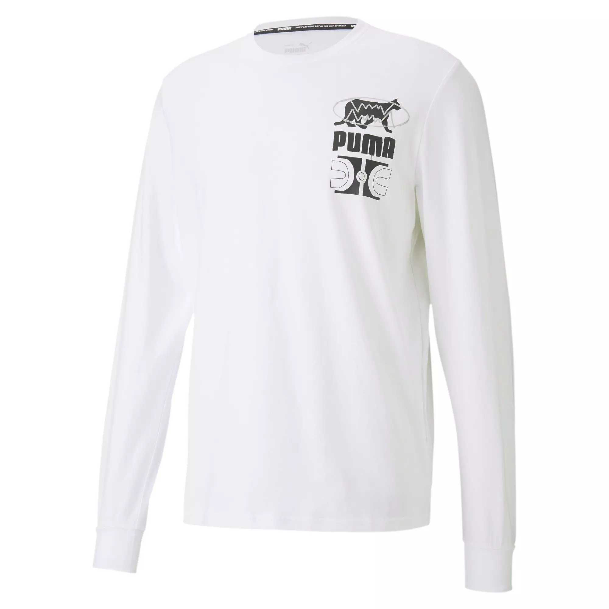 Make your mark on the court in the classic fit and fierce graphics of our PUMA Men's Parquet Graphic Long Sleeve T-Shirt from PUMA Hoops.