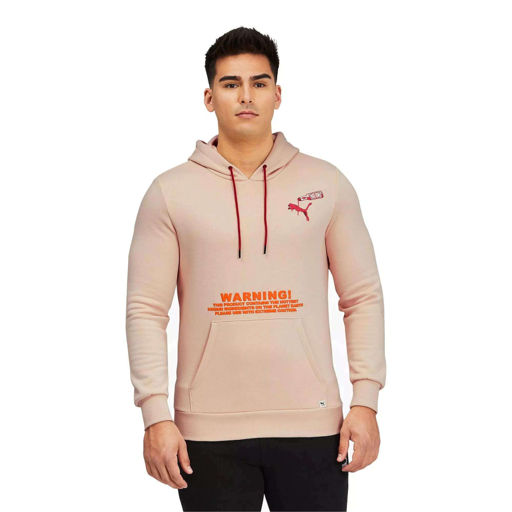 Live every day like it’s Taco Tuesday in this fiery Puma Men's Pink Caliente Pullover Hoodie. Featuring bold graphics and warning labels, this piece is perfect for adding a little bit of spice to your ‘fit.