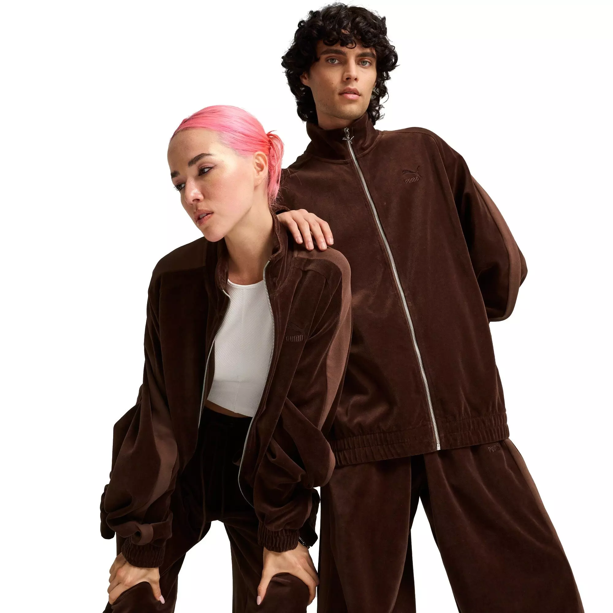 Stepping out in style and comfort in this brown PUMA Men's T7 Oversized Velour Track Jacket.Features