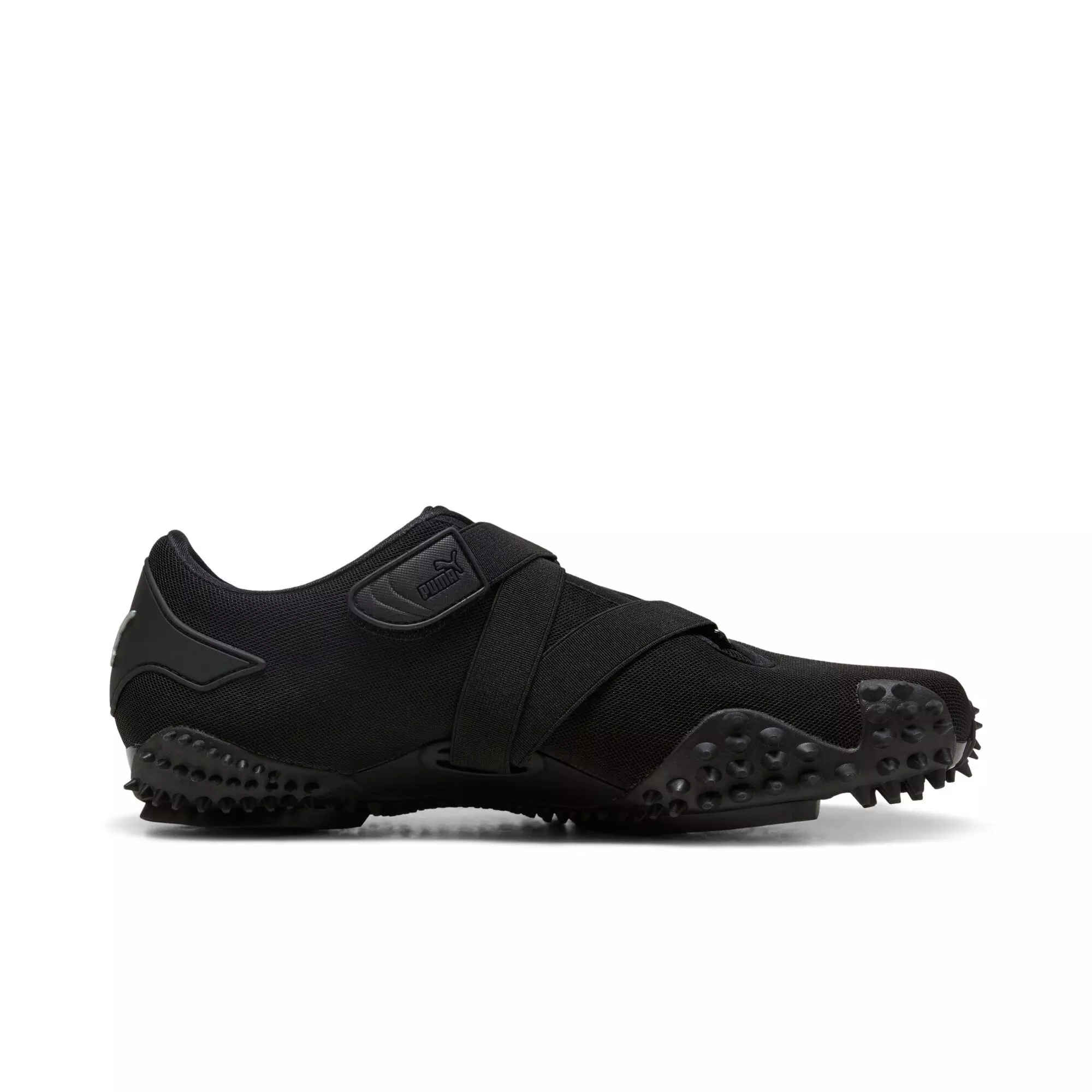 PUMA Mostro OG "PUMA Black/PUMA Silver" Men's Shoe isn’t a shoe for just anyone. For over two decades it’s been worn by those who defy conventions and eschew the norm. Taking its name from the Italian word for monster, Mostro is a hybrid creation that draws from two diverse realms: the sleek sprinting spikes of the ‘60s and the surfing shoes of the ‘80s. To this day it continues to captivate with its distinctive, sculptural design, low-profile shape, and avant-garde, spiked sole.Features