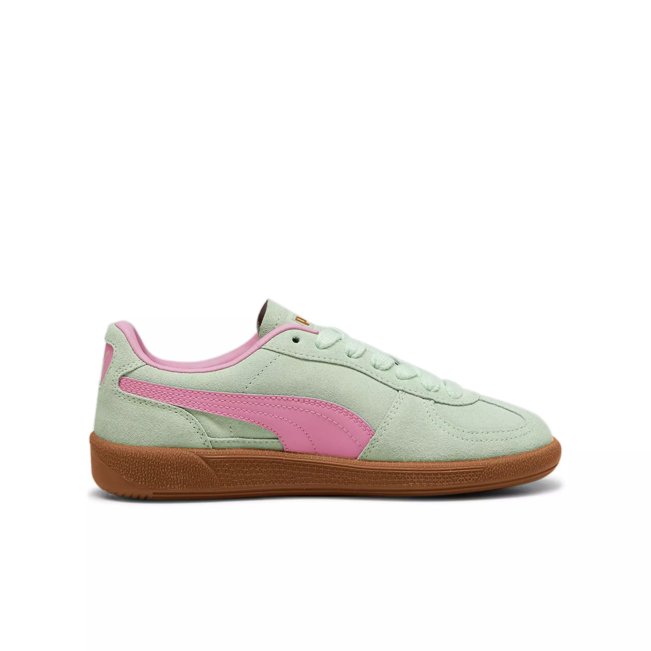 PUMA Palermo JR "Fresh Mint/Fast Pink" Grade School Girls' ShoeA terrace legend from our archives returns: The Palermo. The silhouette debuted back in the early '80s, where it quickly became a staple among the terrace crowds in British soccer stadiums. Now, we’ve brought it back for the fans. Like the original, the PUMA Palermo JR "Fresh Mint/Fast Pink" Grade School Girls' Shoe is complete with its signature tag at the upper, a T-toe construction, and, of course, the classic gum sole. This version has a suede base and leather Formstrip with foil-printed PUMA branding.