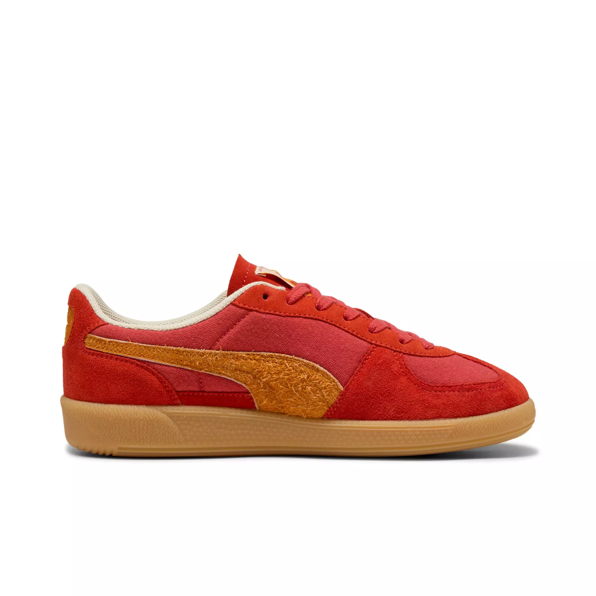 A terrace legend from our archives returns: The PUMA Palermo Weathered "Red/Tan" Men's Shoe. The silhouette debuted back in the early '80s, where it quickly became a staple among the terrace crowds in British soccer stadiums. Now, we’ve brought it back for the fans. Like the original, the Palermo is complete with its signature tag at the upper, a T-toe construction, and, of course, the classic gum sole. This version has a suede base and leather Formstrip with foil-printed PUMA branding.