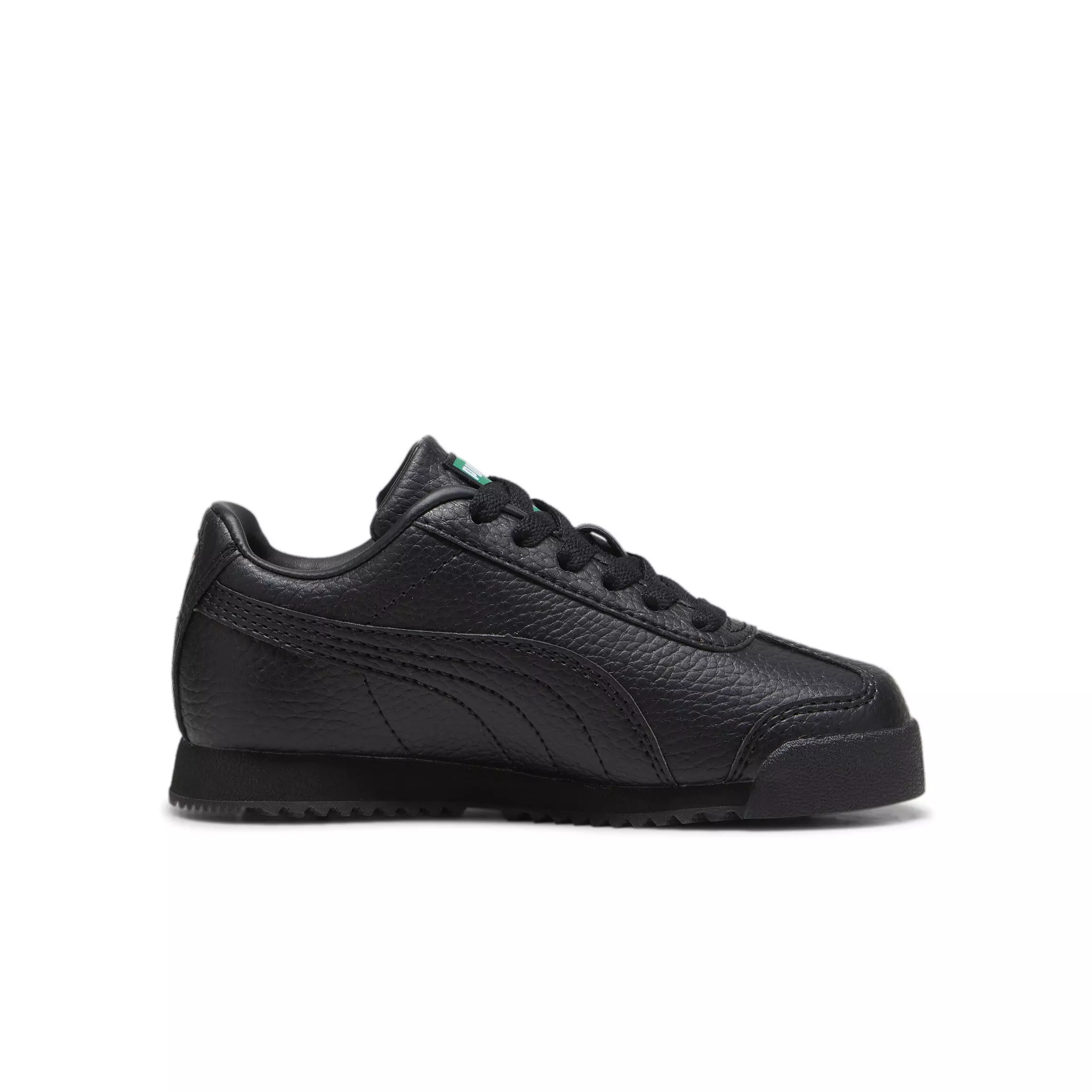 PUMA Roma "Black" Preschool Boys' ShoeFrom the 1968 PUMA Archives, the Roma was a lightweight training shoe equipped with a thick, padded tongue and orthopedic arch supports. The PUMA Roma "Black" Preschool Boys' Shoe returns for the next generation with a smooth synthetic leather upper and clean look and feel.