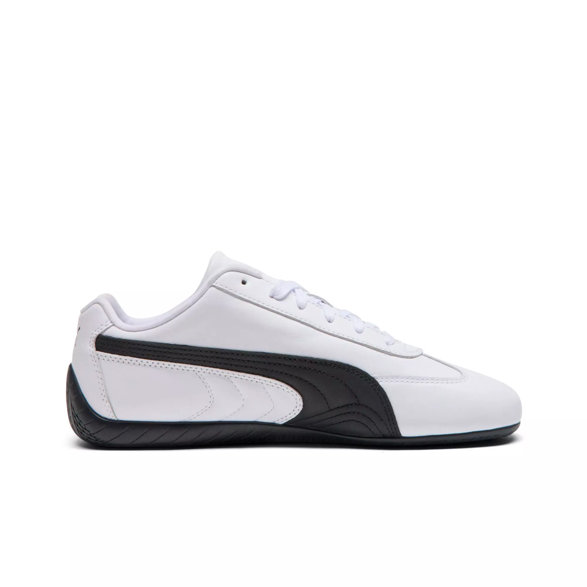The PUMA Speedcat Full Leather "PUMA White/PUMA Black" Men's Shoe channels classic racing DNA into a streamlined, low-profile silhouette. A smooth leather upper and clean lines make it an easy match for tees and tailoring alike, moving seamlessly from curbside coffee runs to nights out.
