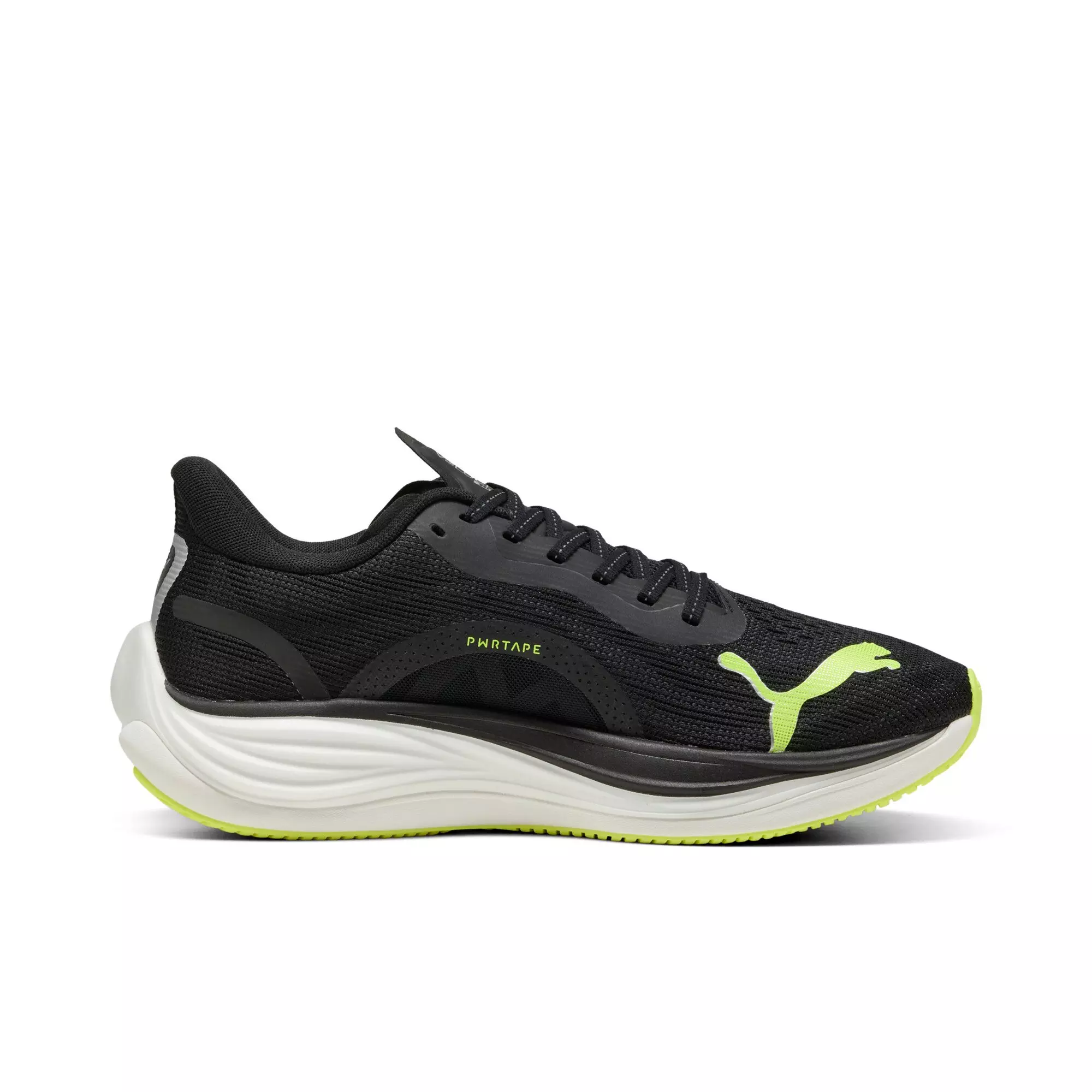 The PUMA Velocity NITRO 3 "PUMA Black/Yellow Alert" Men's Running Shoe – with this shoe, we're taking industry-best and bringing it to you. These kicks are all about speed and comfort thanks to advanced NITRO™ technology, offering superior responsiveness and cushioning in a lightweight package that feels like you're running on clouds. Plus, with the heel spoiler, you not only get a sleek look but you'll also benefit from enhanced stability for confident strides. Get ready to up your running game with the Velocity NITRO™ 3. It's not just a shoe; it's a statement.Features
