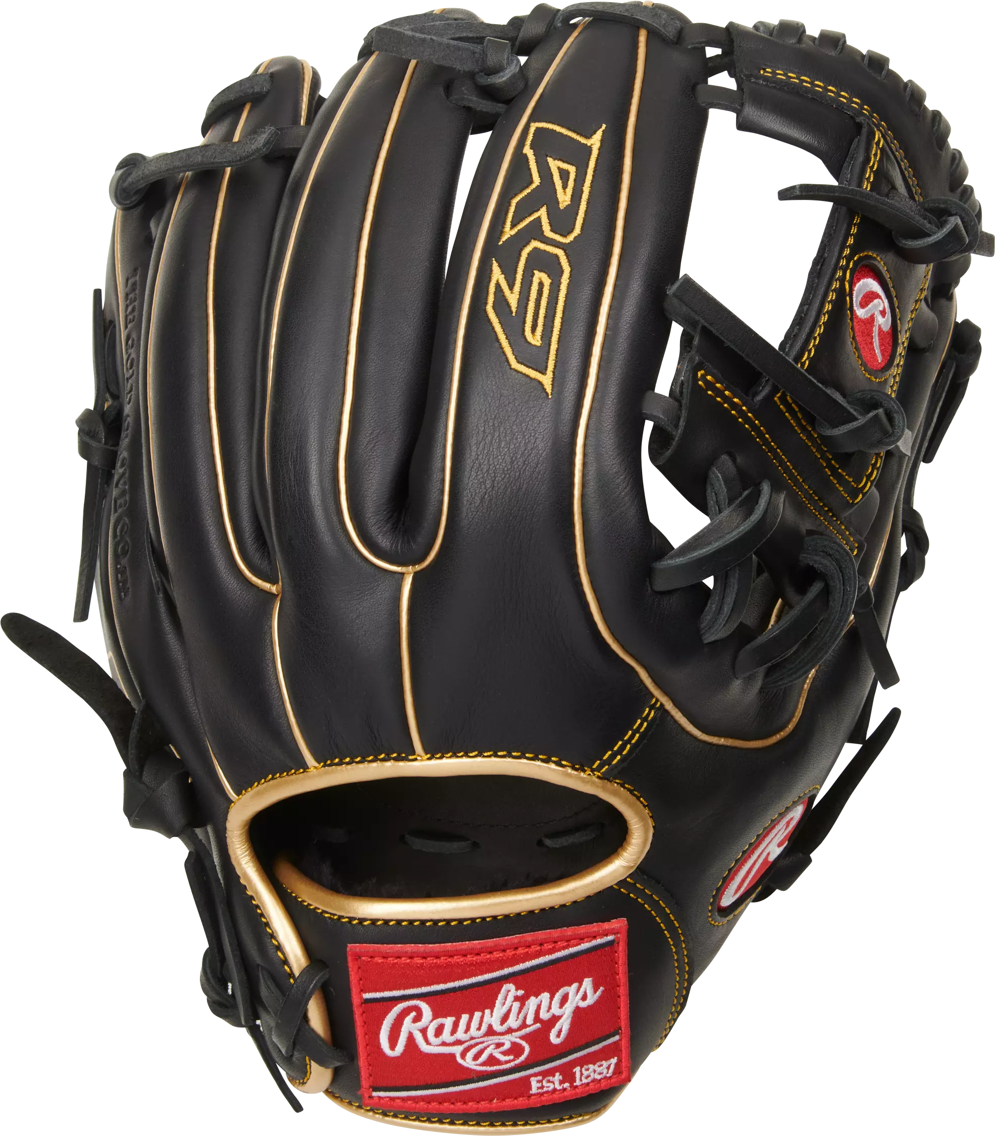 The Rawlings R9 Series 11.5" I-Web Baseball Glove 2021 combines durable full-grain leather with a responsive feel and deep pocket. Its adjustable wrist strap ensures a snug fit and reliable support on every play.