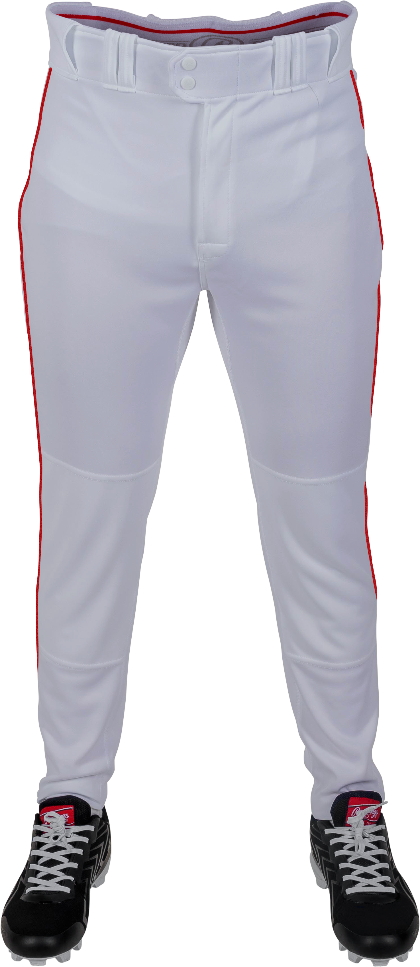 Rawlings Youth 150 Jogger Fit Piped Baseball Pants - White/Red