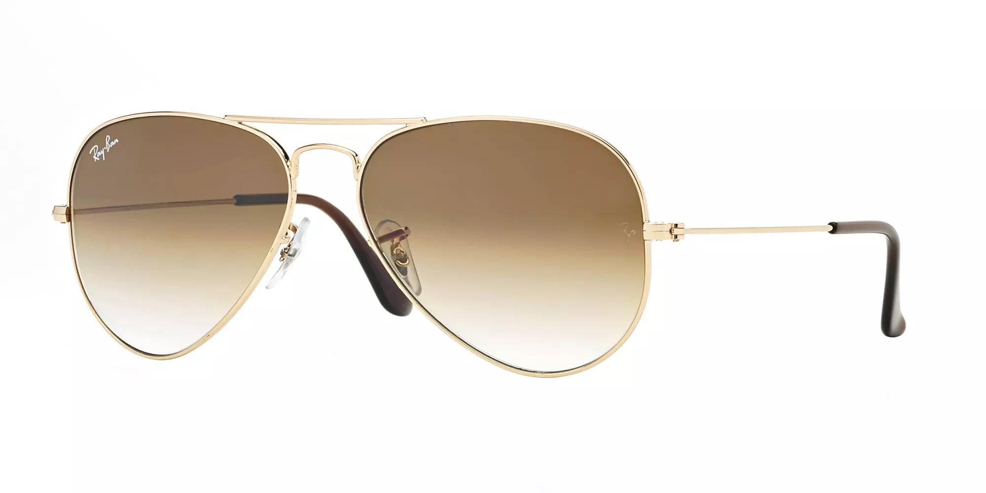 The Ray-Ban Aviator Gradient Sunglasses showcase the original teardrop lens shape that defined an era. Gold frames and gradient lenses deliver a clean, heritage-inspired look. A gold-tone finish adds lasting shine.