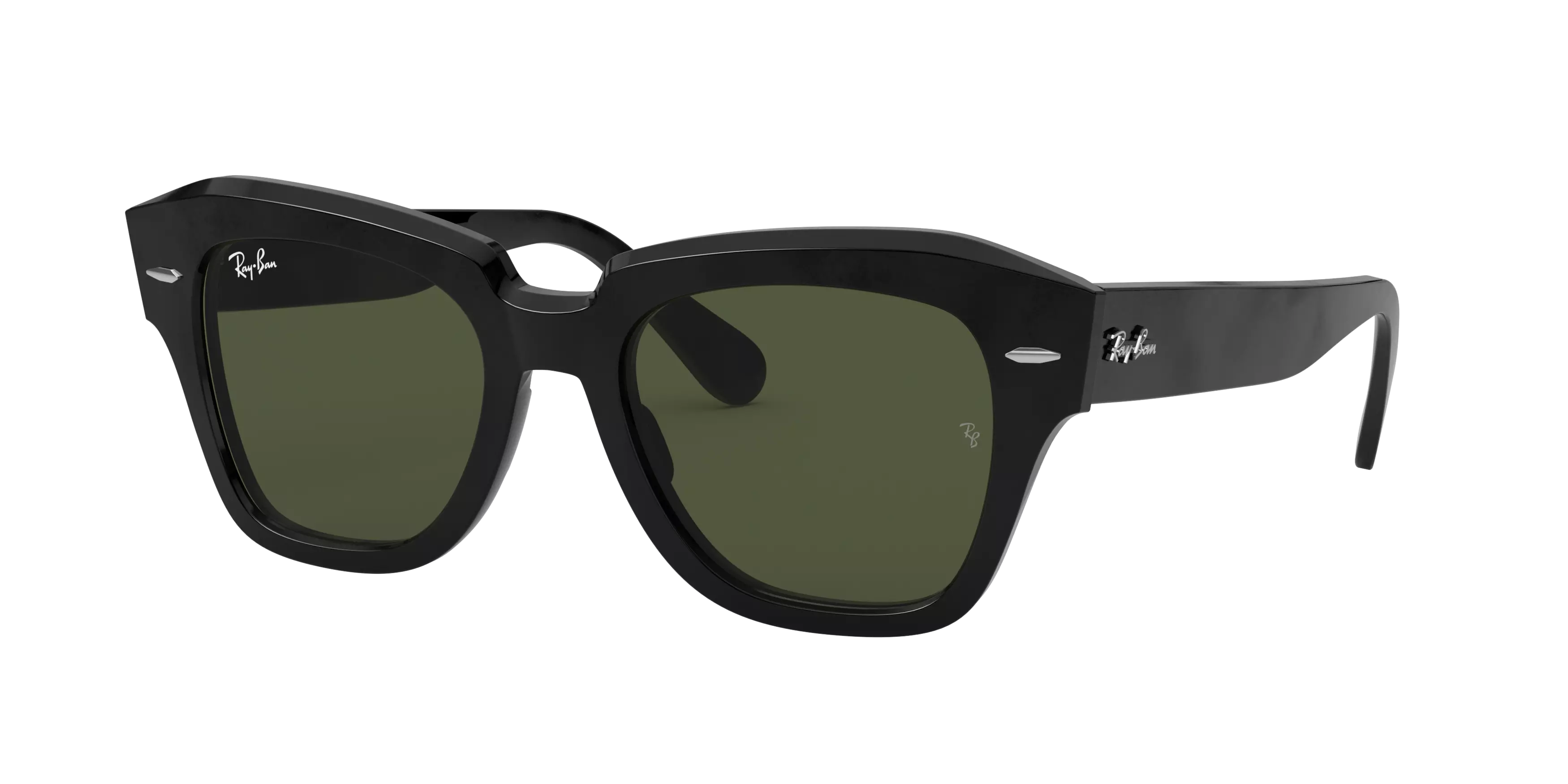 Ray-Ban State Street Sunglasses - Black feature an elegant squared acetate frame in a range of solid and bilayer colors. Their contemporary design accentuates the face with a subtle nod to classic Wayfarer style. Crafted from premium acetate, these sunglasses offer lasting durability and lightweight comfort.Choose classic, gradient or polar lenses to suit every mood. The acetate temple tips and Ray-Ban logo add comfort and a signature finish.