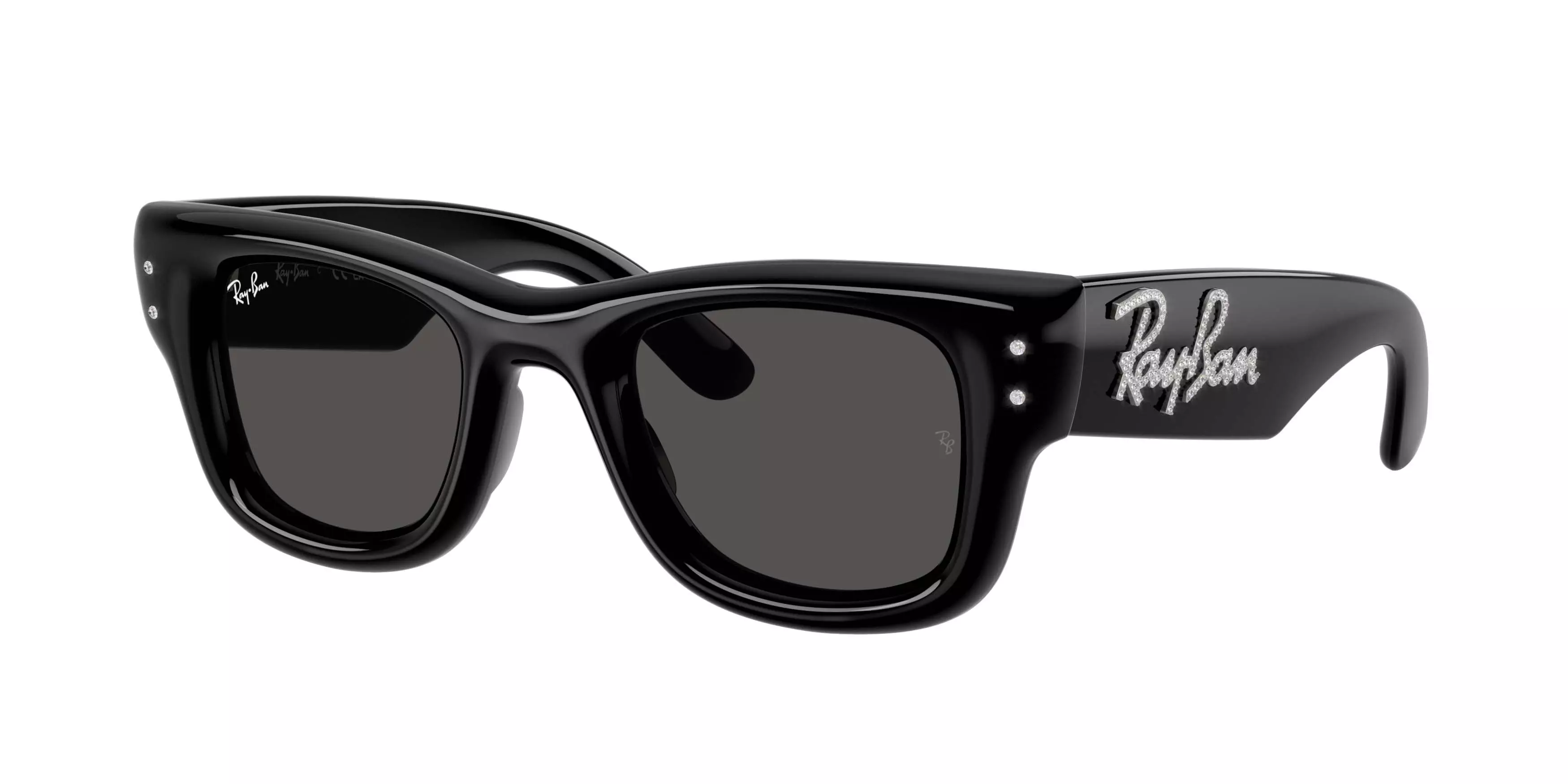 Ray-Ban Wayfarer Puffer Crystal Edition Ultra Black Sunglasses – Polished Black & Strass