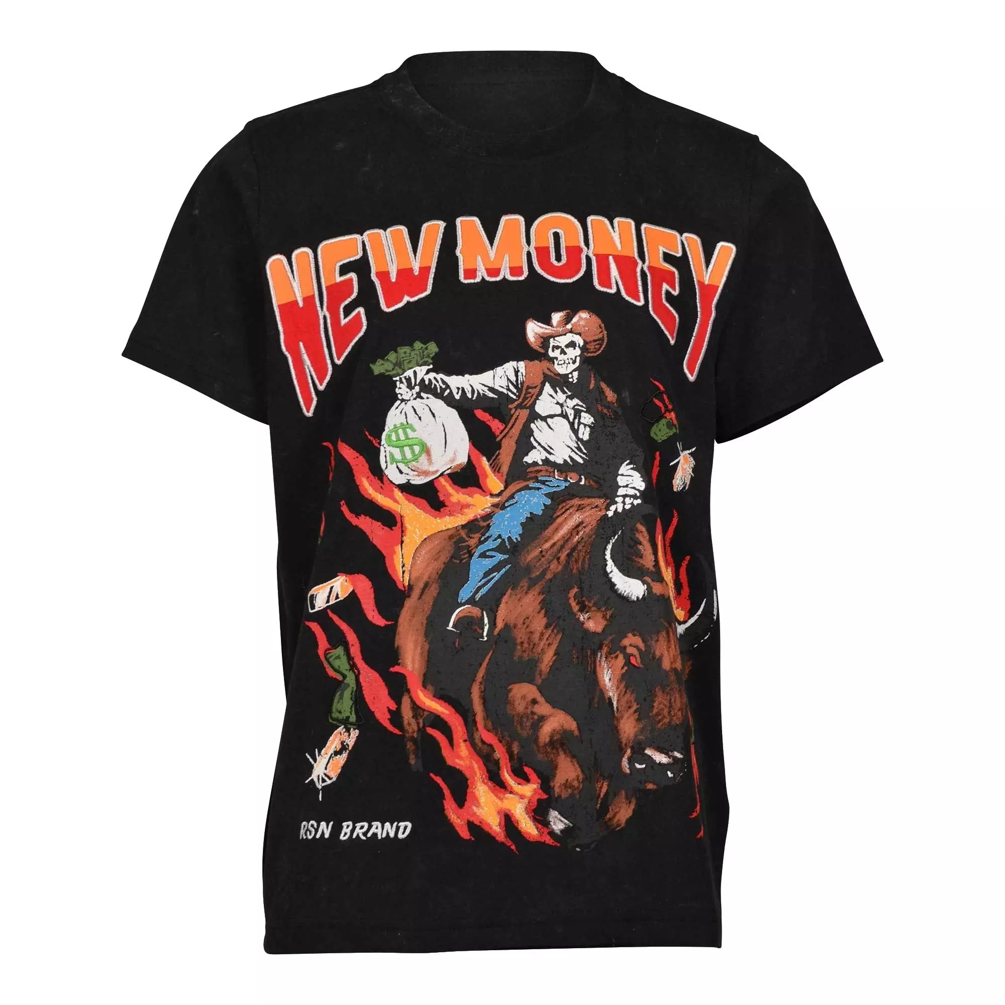 - Material: This Reason Big Boys' New Money Tee features 100% cotton dyed in washed black, offering a soft texture and a vintage-inspired finish.