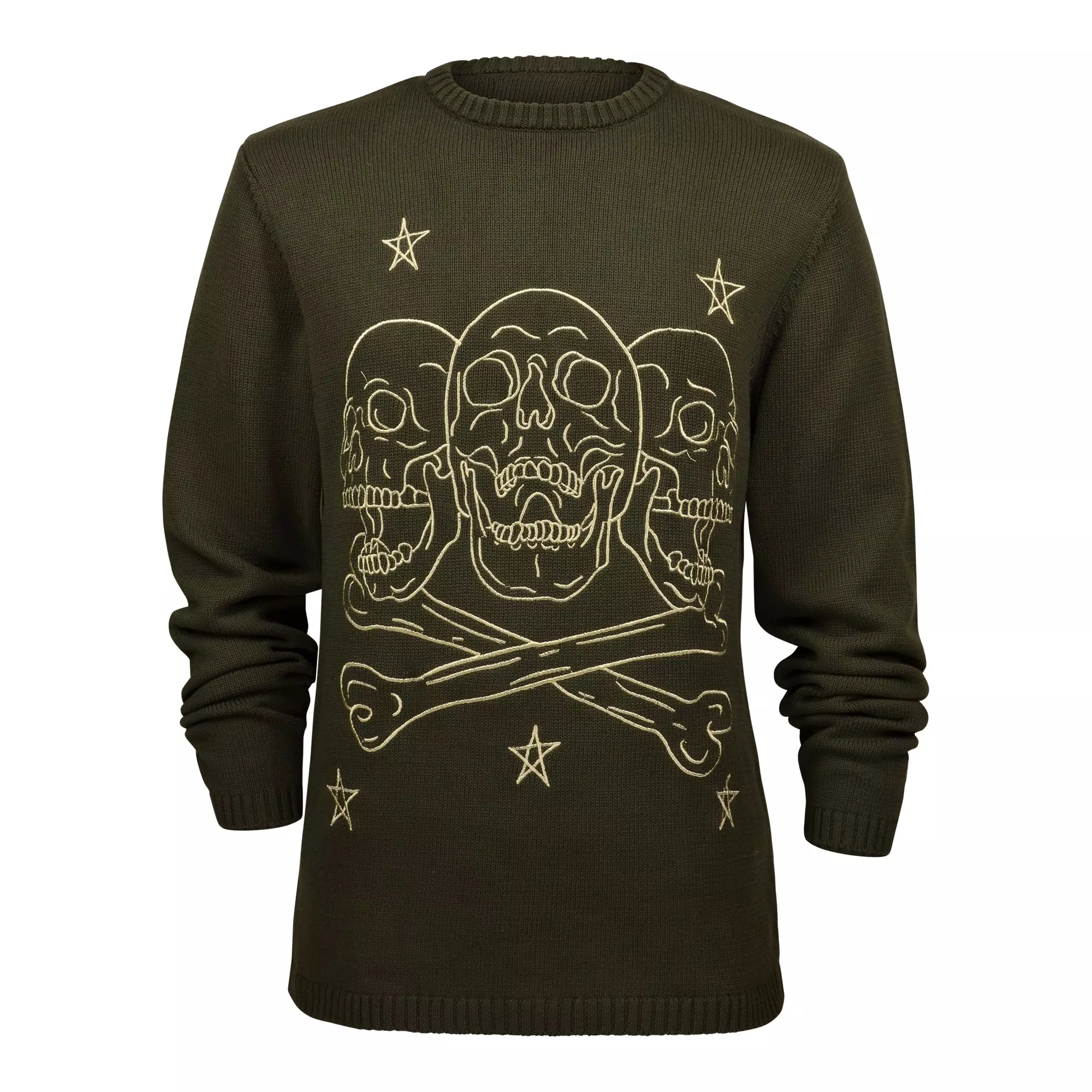 Stay warm with understated edge in the Reason Men's Crossbones Sweater - Olive. A comfortable knit and striking crossbones graphic deliver casual confidence without sacrificing ease, making this piece an effortless choice for cooler days and relaxed nights out.