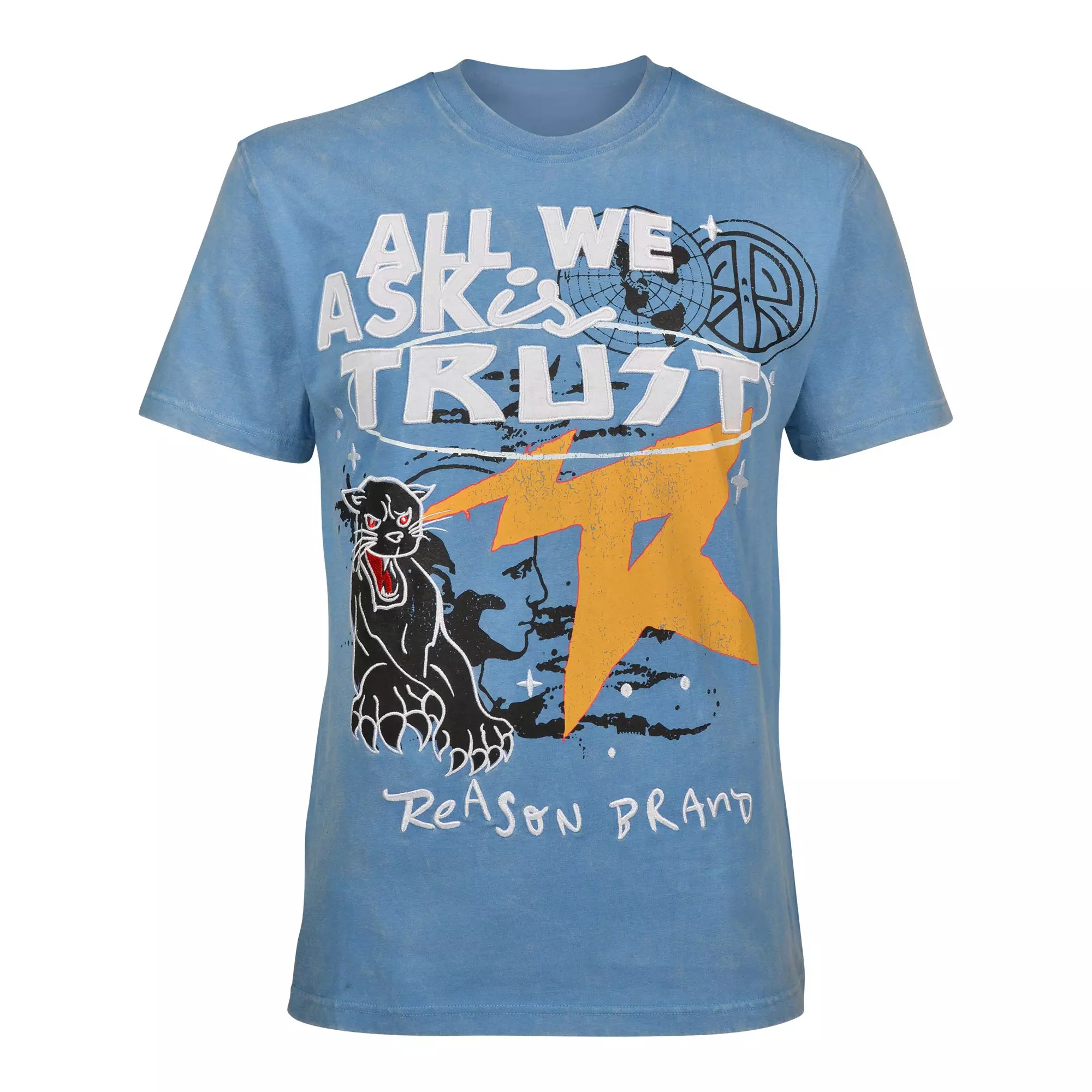 The Reason Men's Panther Trust Wash Tee - Blue is an easy-to-clean humble piece of casual clothing that is understated enough for straightforward outfit coordination but cool enough to make a fashion statement.Features