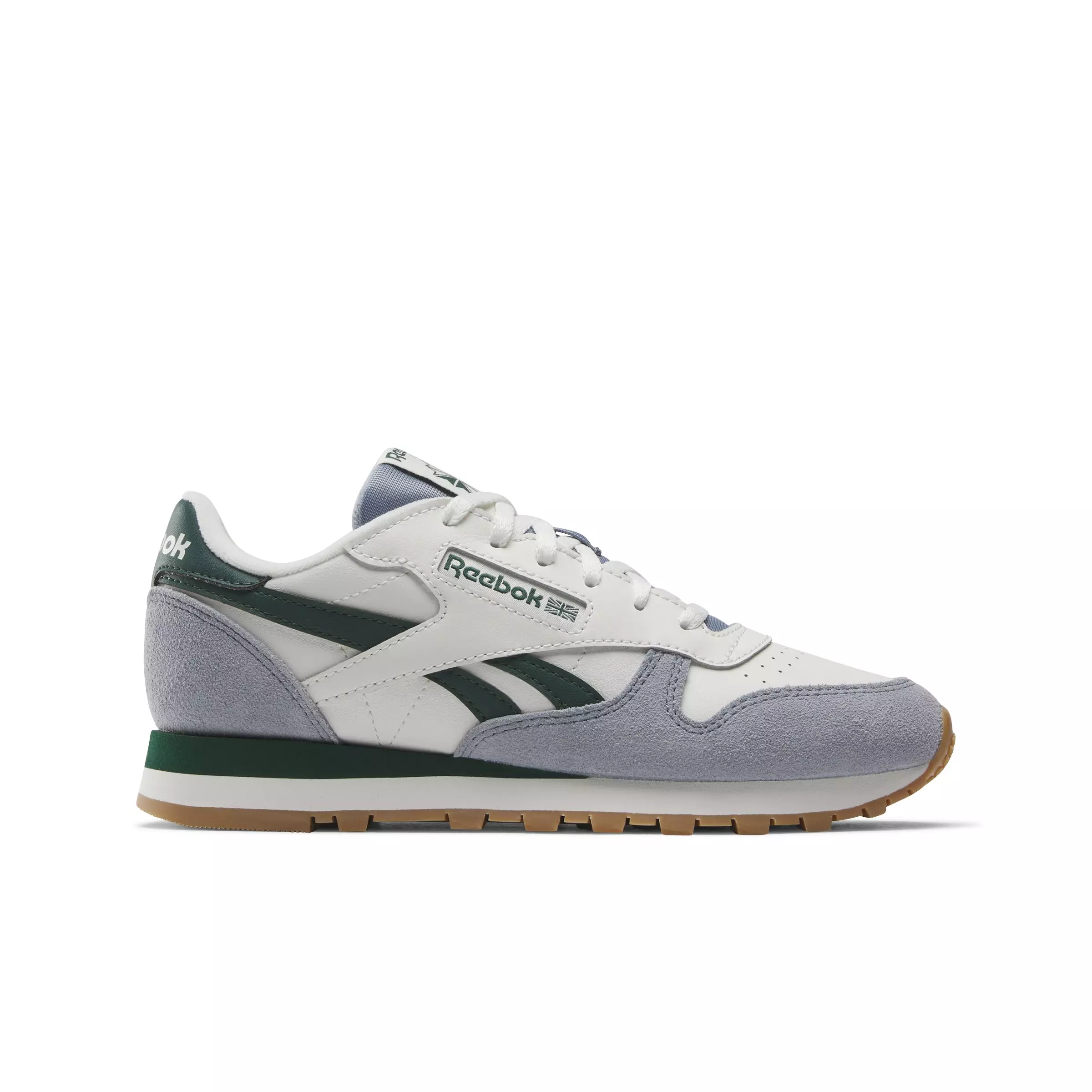 Bring timeless style to every day with the Reebok Classic Leather "Slate/Off White/Dark Green" Grade School Boys' Shoe. A soft leather upper and archival logos deliver a clean, heritage look, while the versatile color palette pairs easily with uniforms, denim, and activewear.
