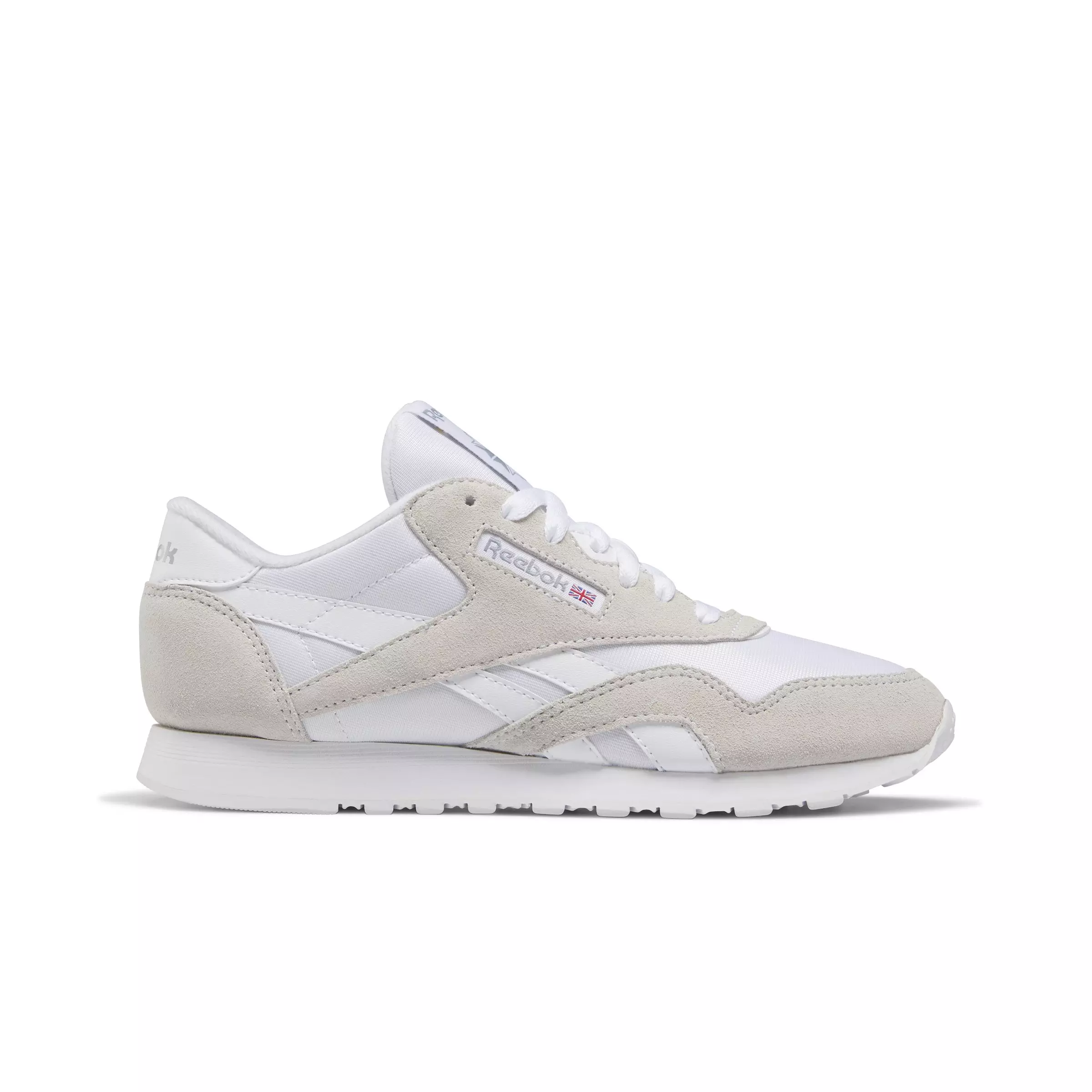 Step into easygoing style with the Reebok Classic Nylon "Ftwr White/Beige" women's shoe. Smooth nylon pairs with soft suede overlays for a clean, velvety look you can dress up or down. Lightweight cushioning keeps every errand and coffee run comfortable.